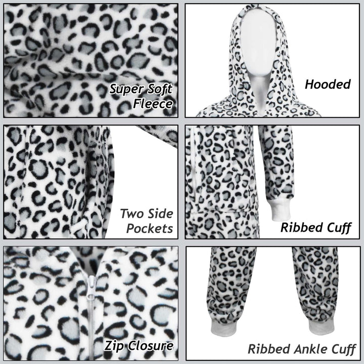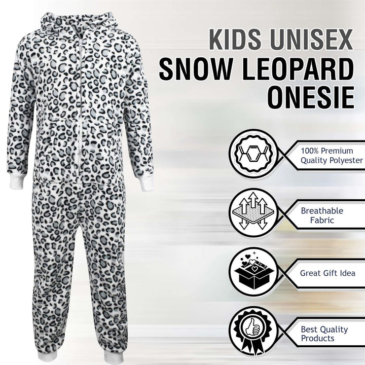 Kids Girls Boys A2Z Onesie One Piece Soft Fluffy Snow Leopard Jumpsuit 2-13 Year