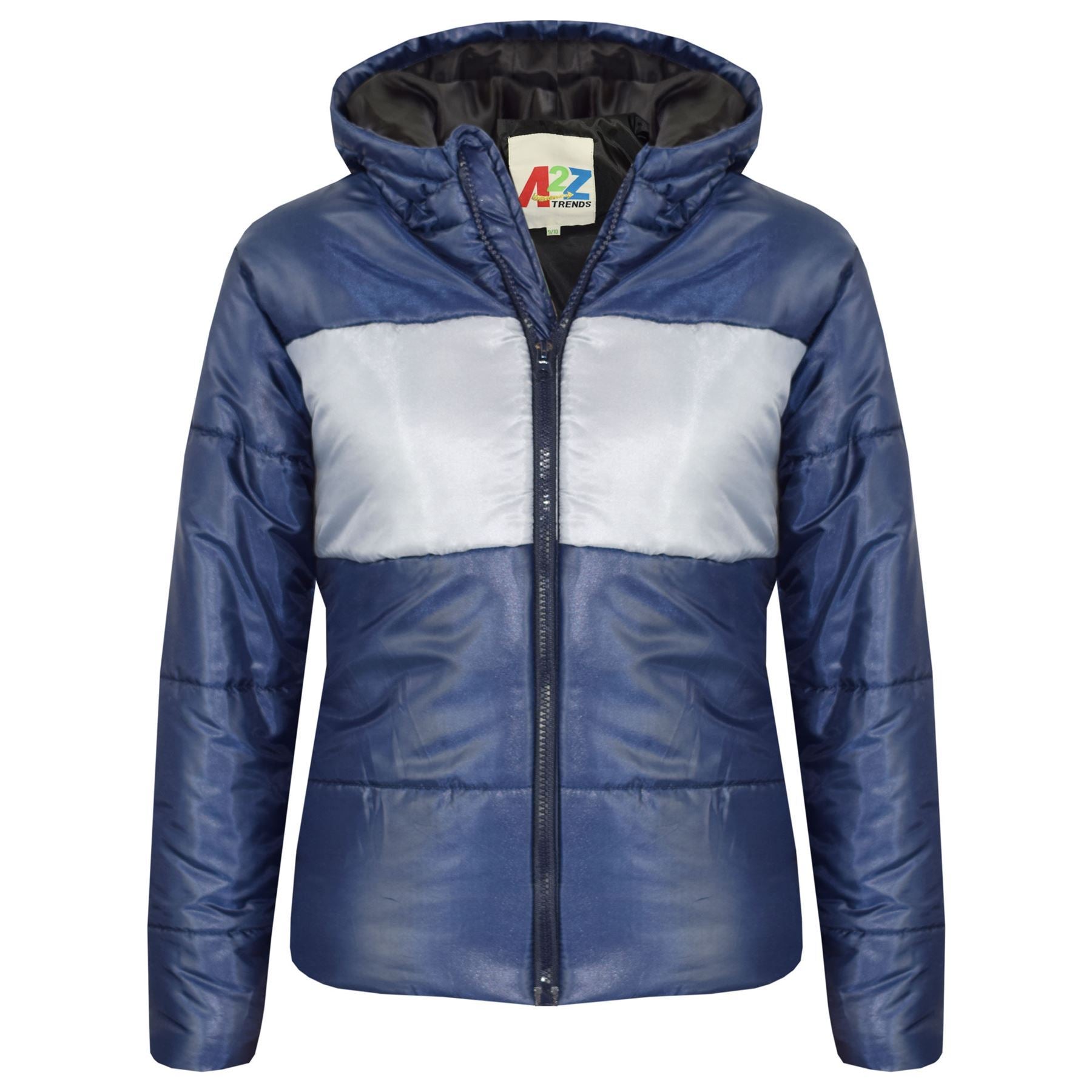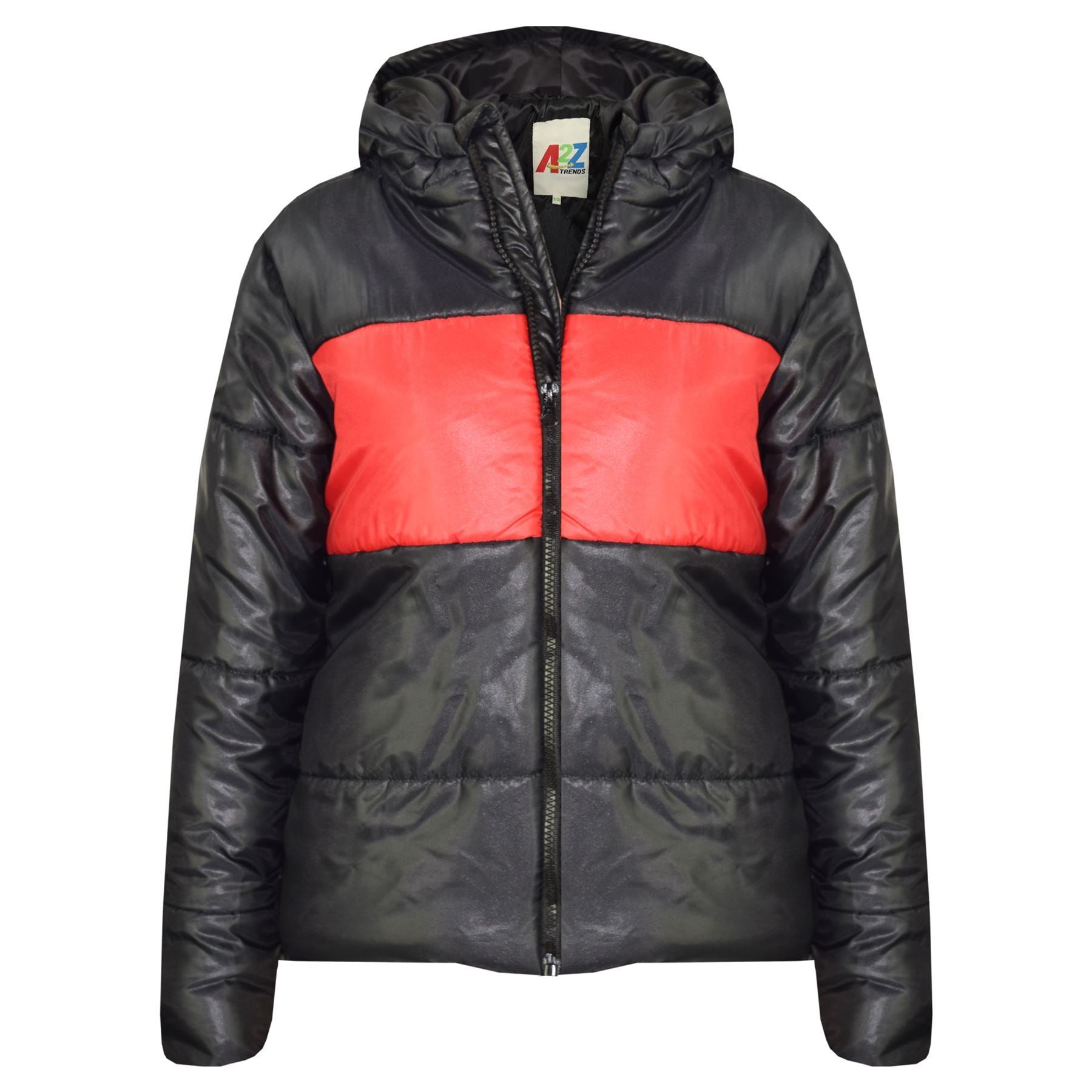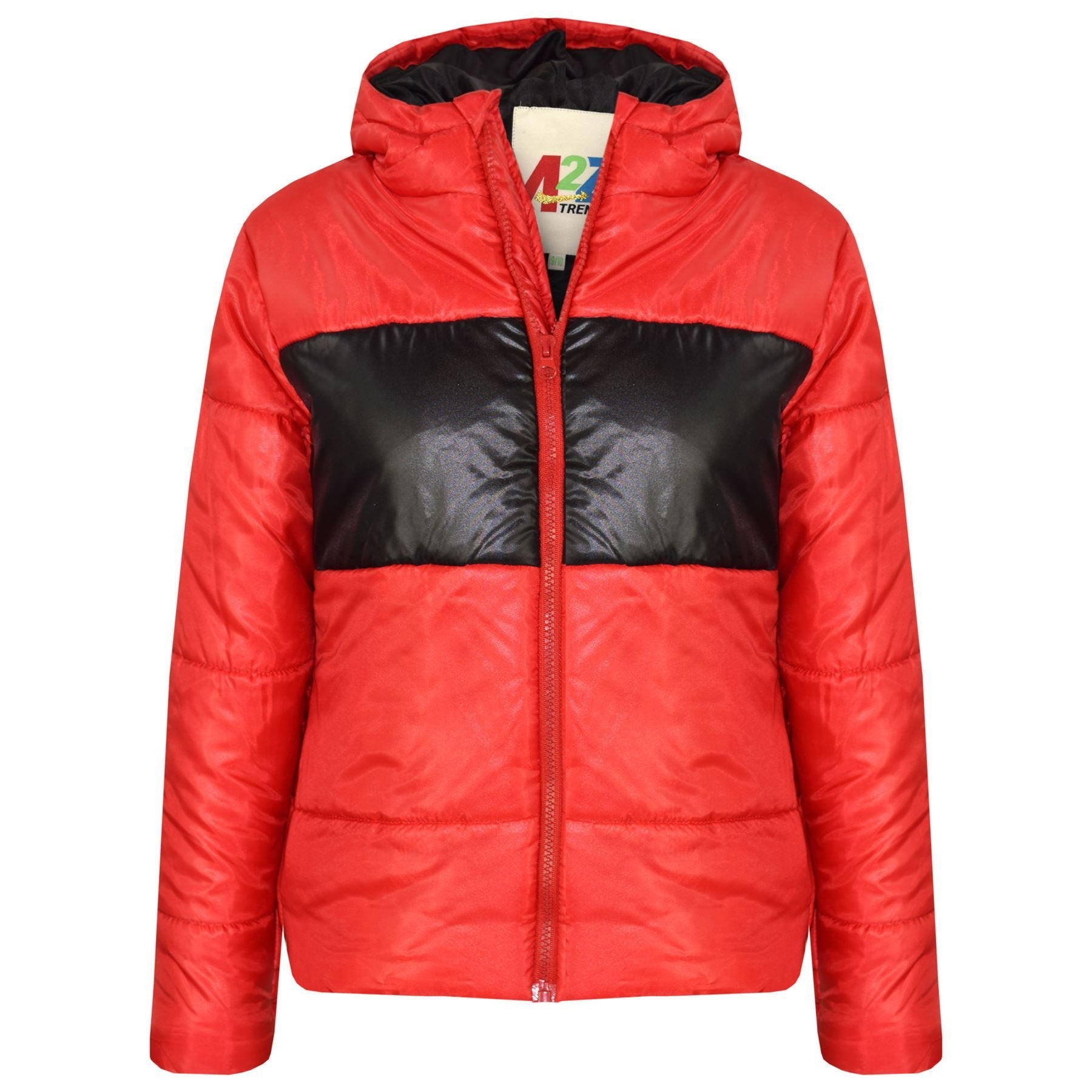 Kids Girls Boys Contrast Panel Jackets Hooded Padded Quilted Warm Coats 5-13 Yr