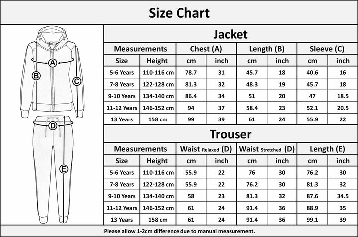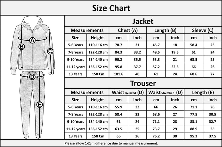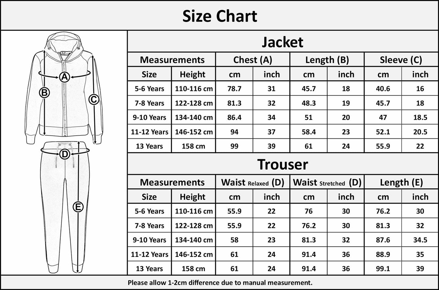 Kids Girls Boys Jogging Suit Fleece Hooded Hoodie Bottom Tracksuit Jogger 5-13Yr