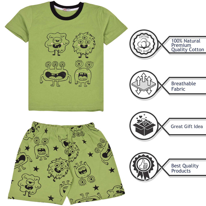 Kids Girls Boys Monster Pyjamas PJs 2 Piece Cotton Set Lounge Suit Age 5-13 Year