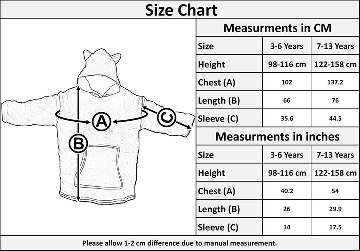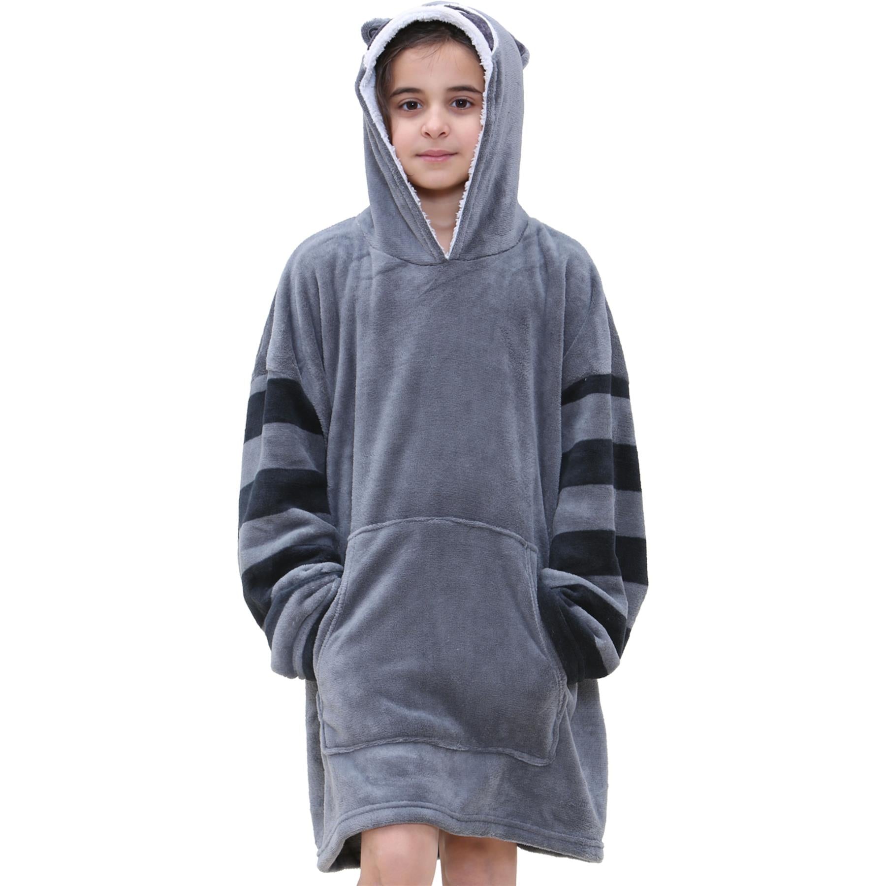 Kids Girls Boys Oversized Hoodie Snuggle Blanket Super Soft Warm Fleece 3-13 Yrs