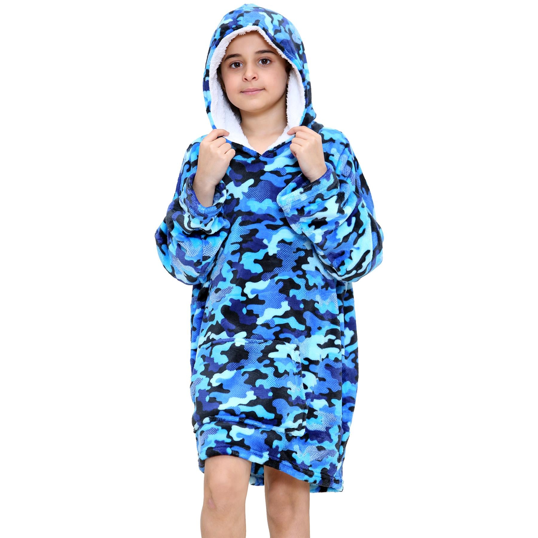 Kids Girls Boys Oversized Hoodie Snuggle Camoflage Super Soft Fleece Blanket