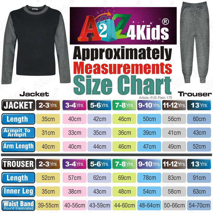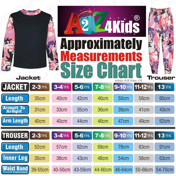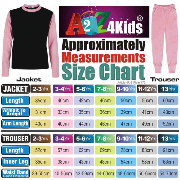 Kids Girls Boys Pjs Contrast Color Plain Stylish Pyjamas Set New Age 2-13 Years