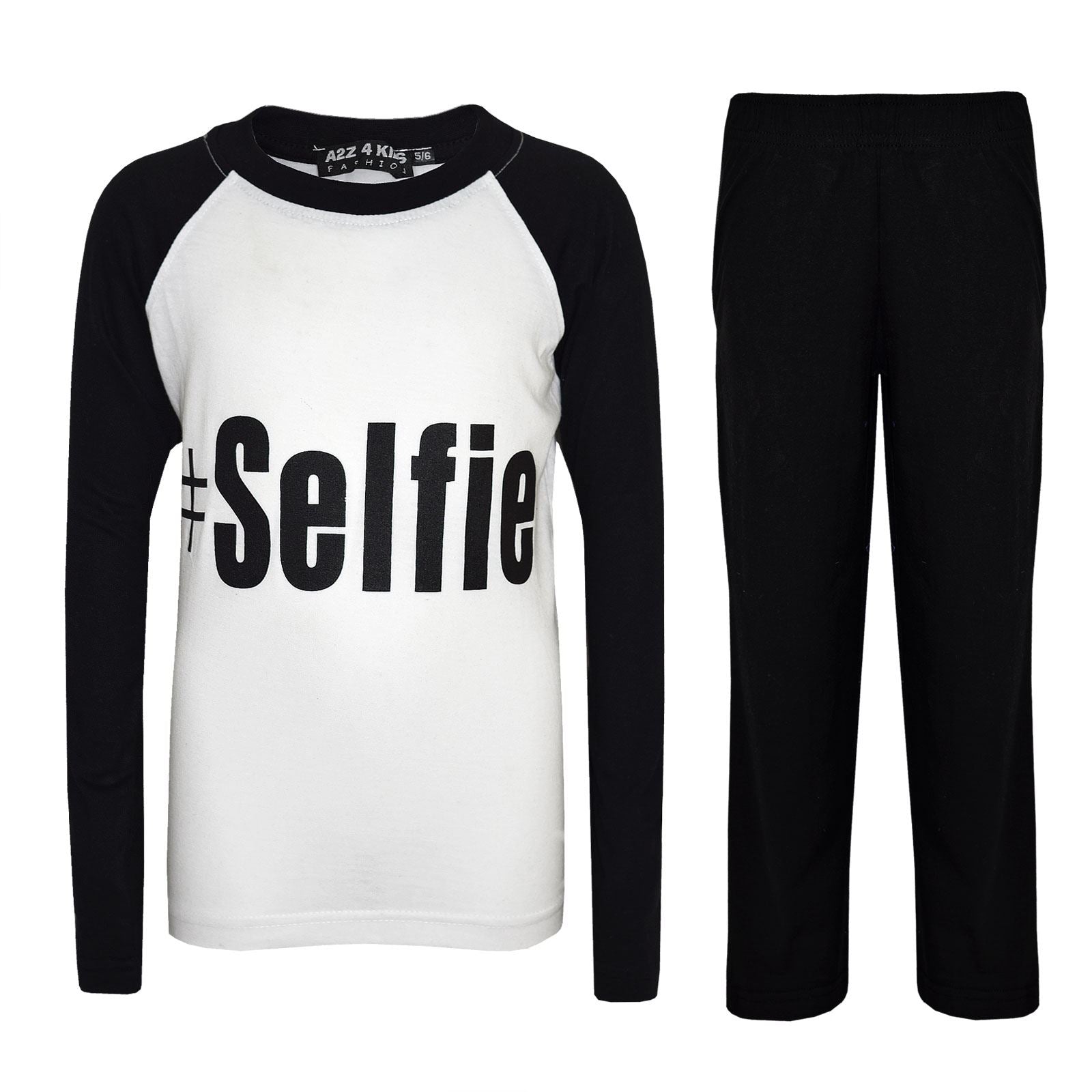 Kids Girls Boys PJ's " #SELFIE " Printed Stylish Pyjamas New Age 5-13 Years
