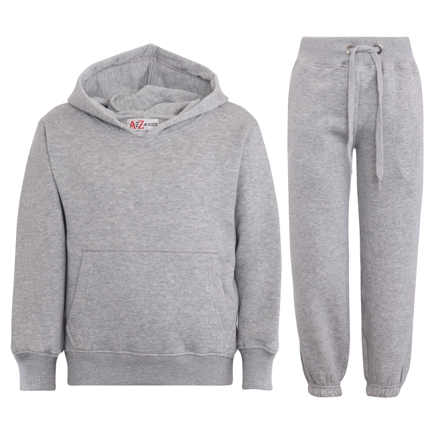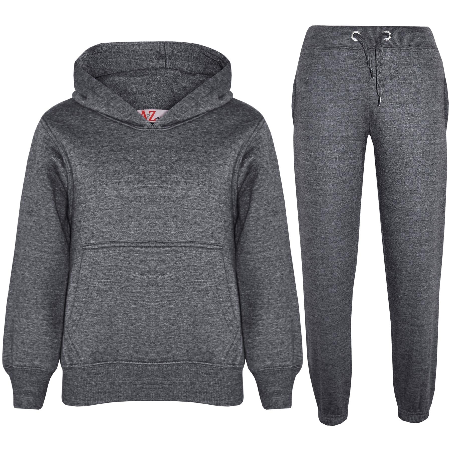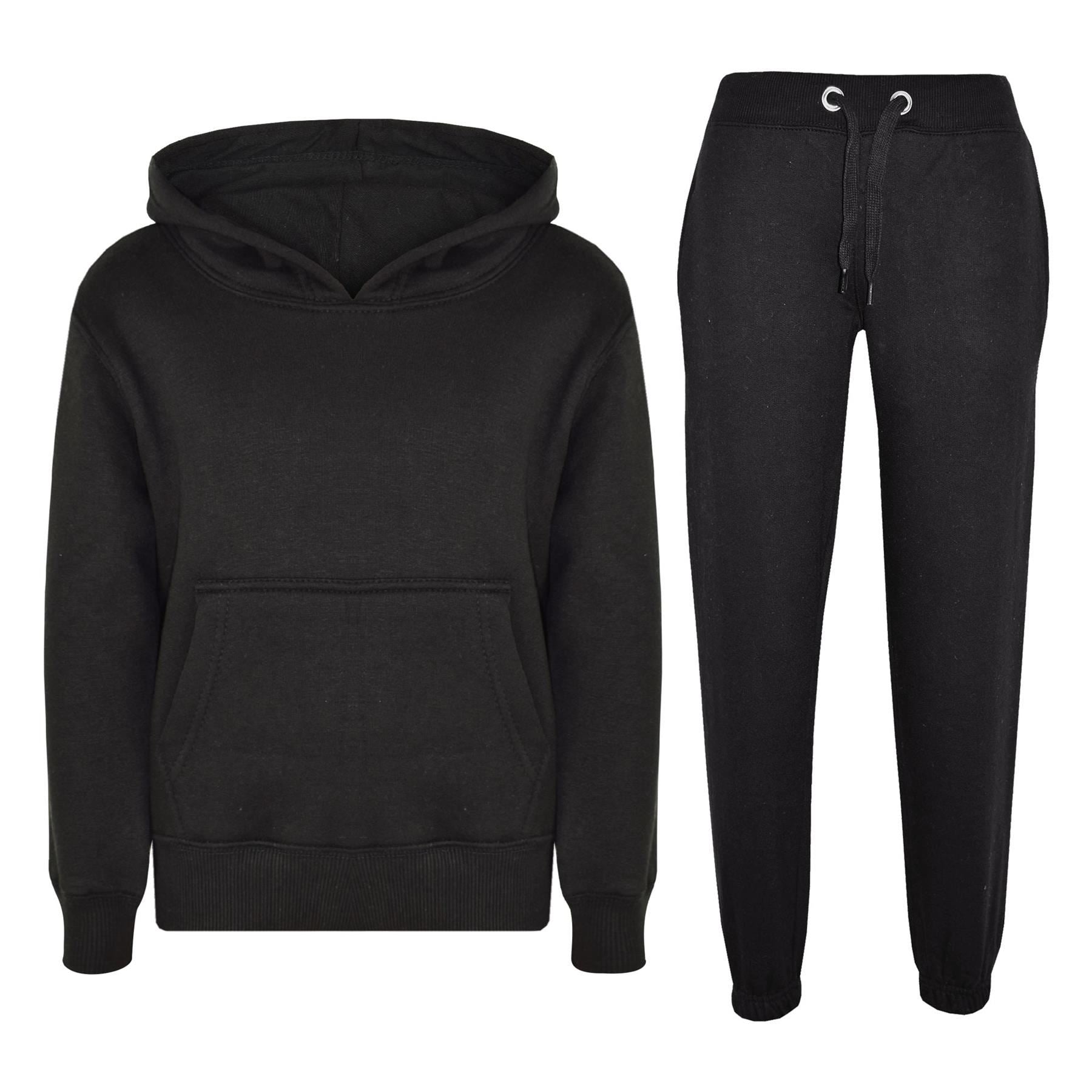 Kids Girls Boys Plain Tracksuit Hooded Hoodie Bottom Jog Suit Joggers 5-13 Years