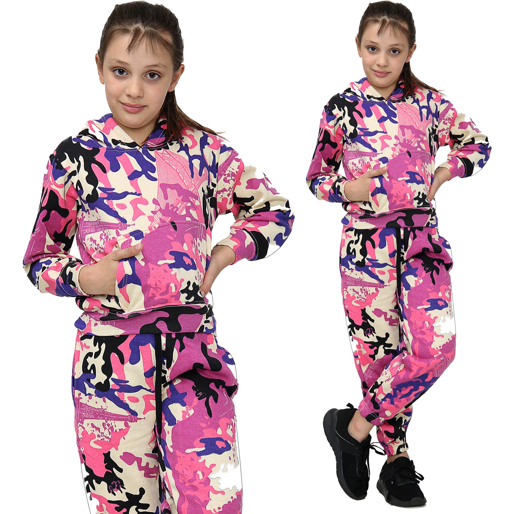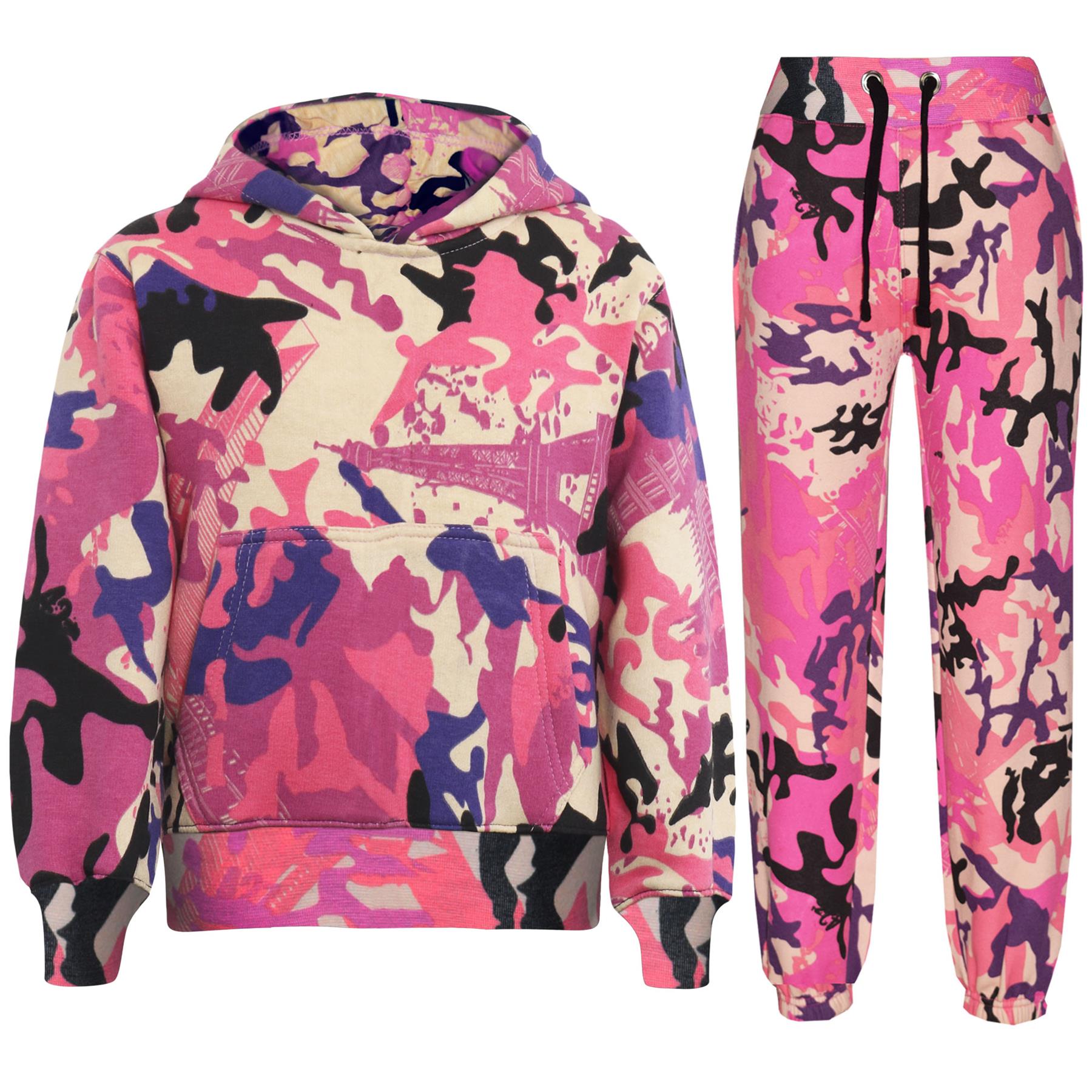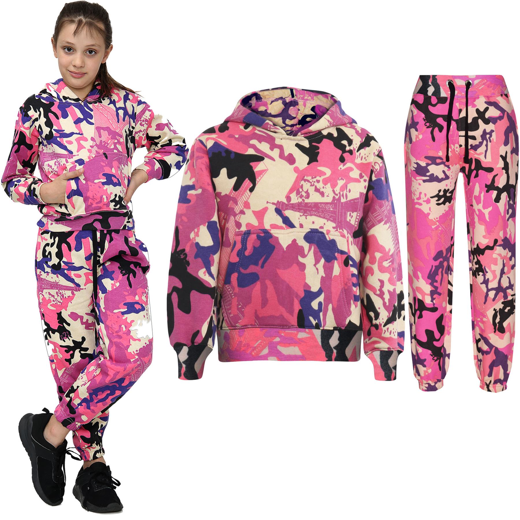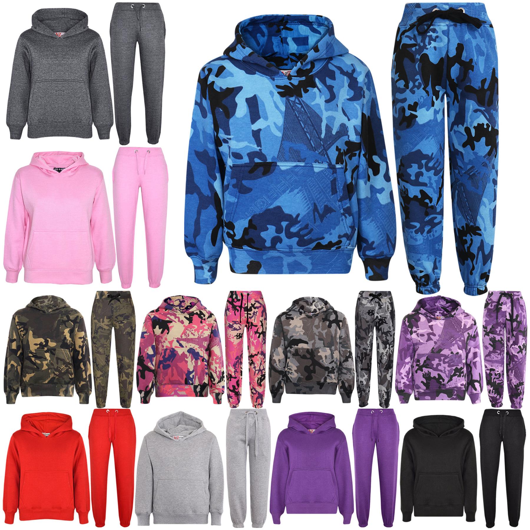 Kids Girls Boys Plain Tracksuit Hooded Hoodie Bottom Jog Suit Joggers 5-13 Years