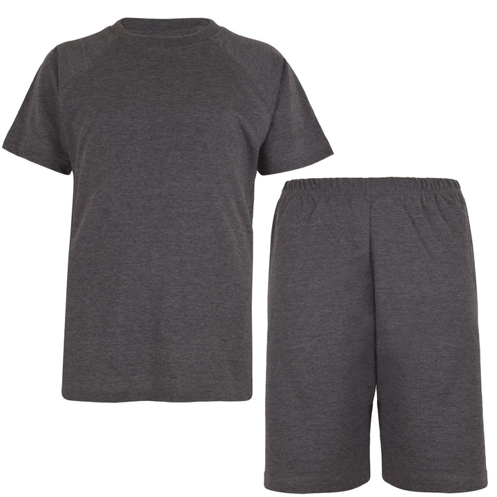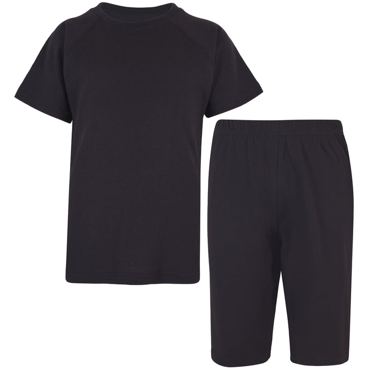 Kids Girls Boys Raglan Sleeves Plain Pyjamas 2 Piece Comfortable Shorts Set 5-14