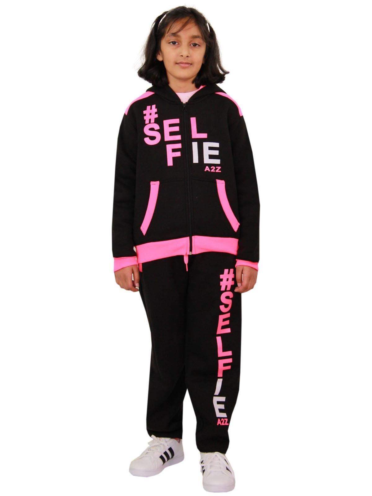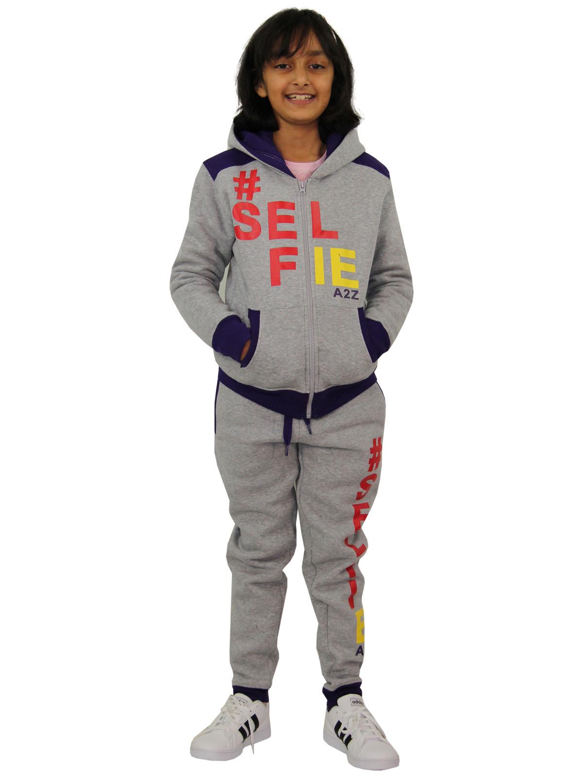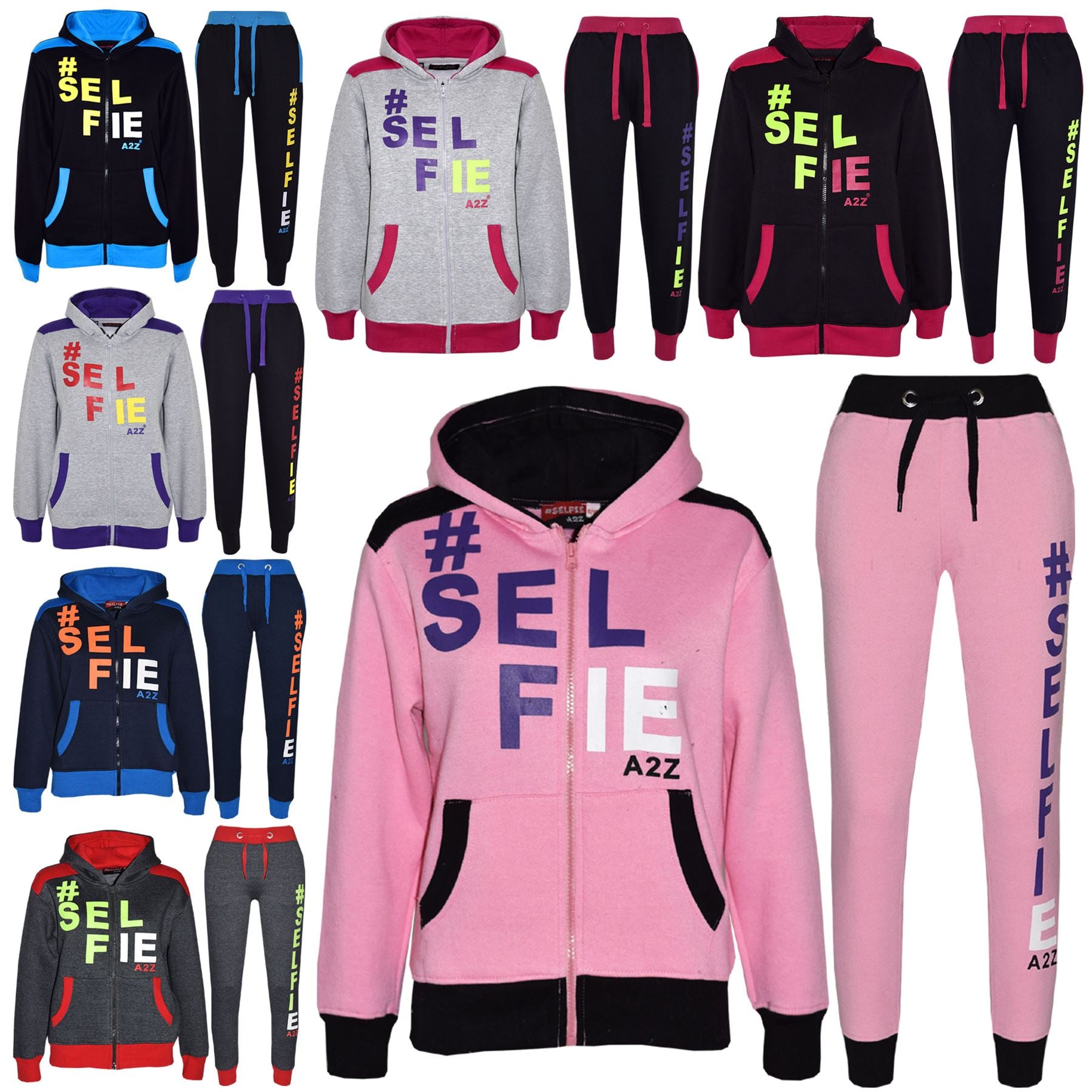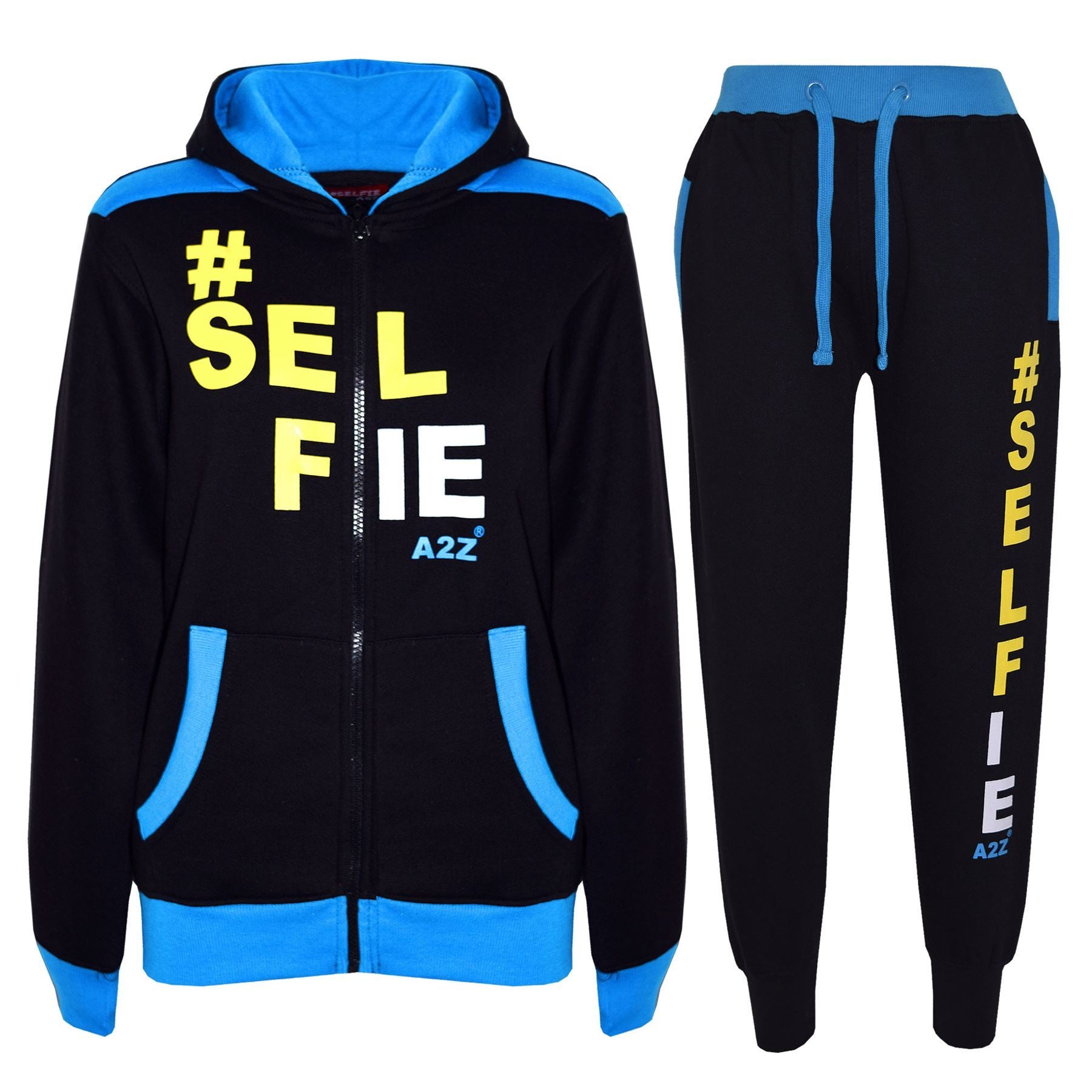 Kids Girls Boys #Selfie Tracksuit Hooded Hoodie Bottom Jog Suit Joggers 7-13 Yrs
