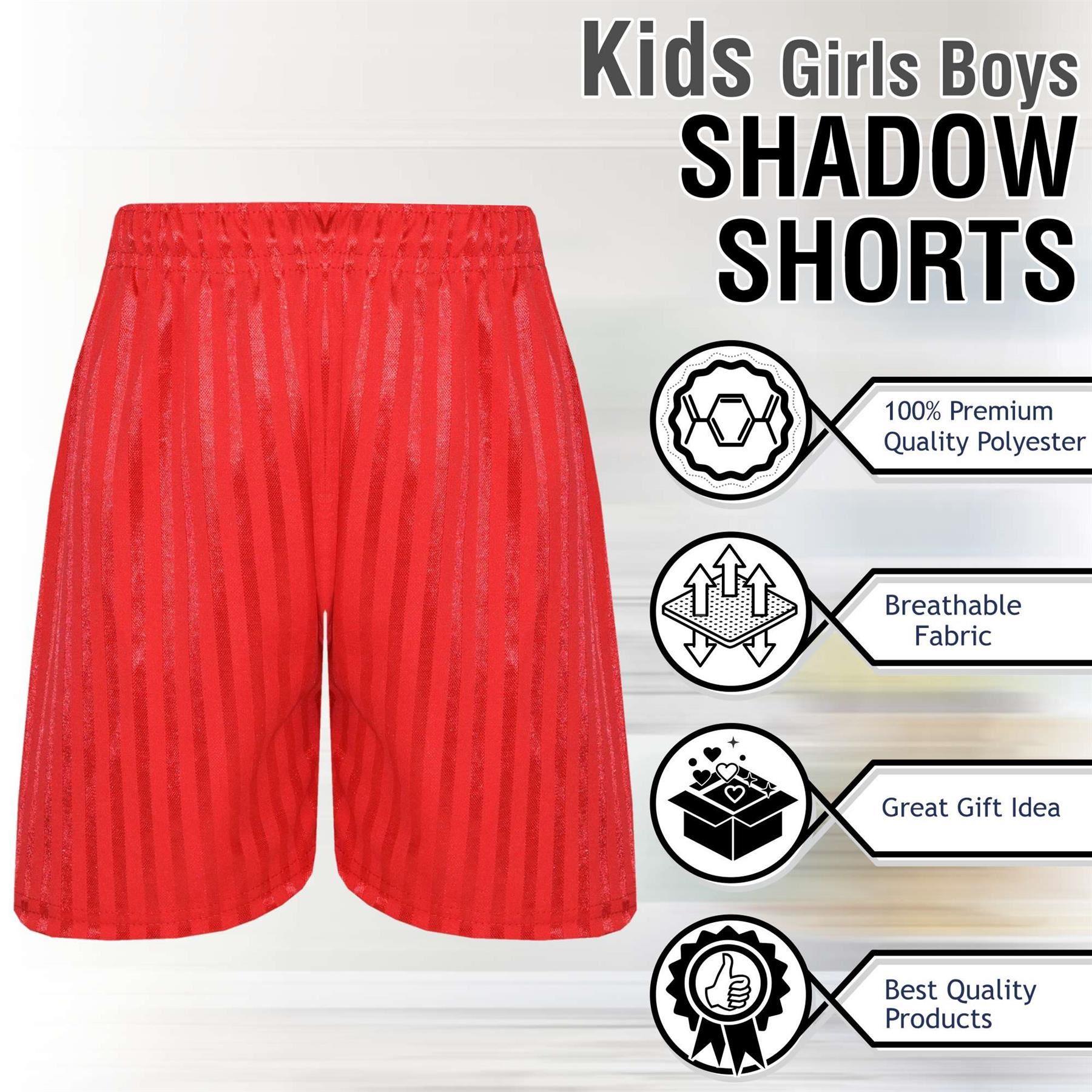Kids Girls Boys Shadow Stripe PE Shorts Sports Football Gym School Short 2-13