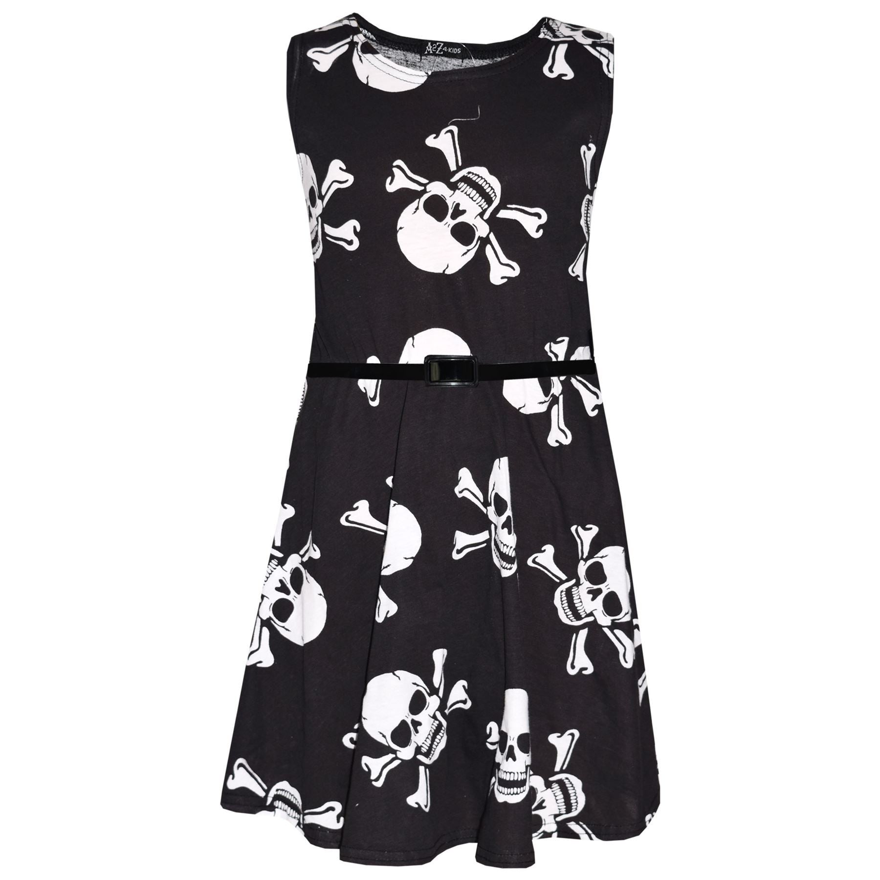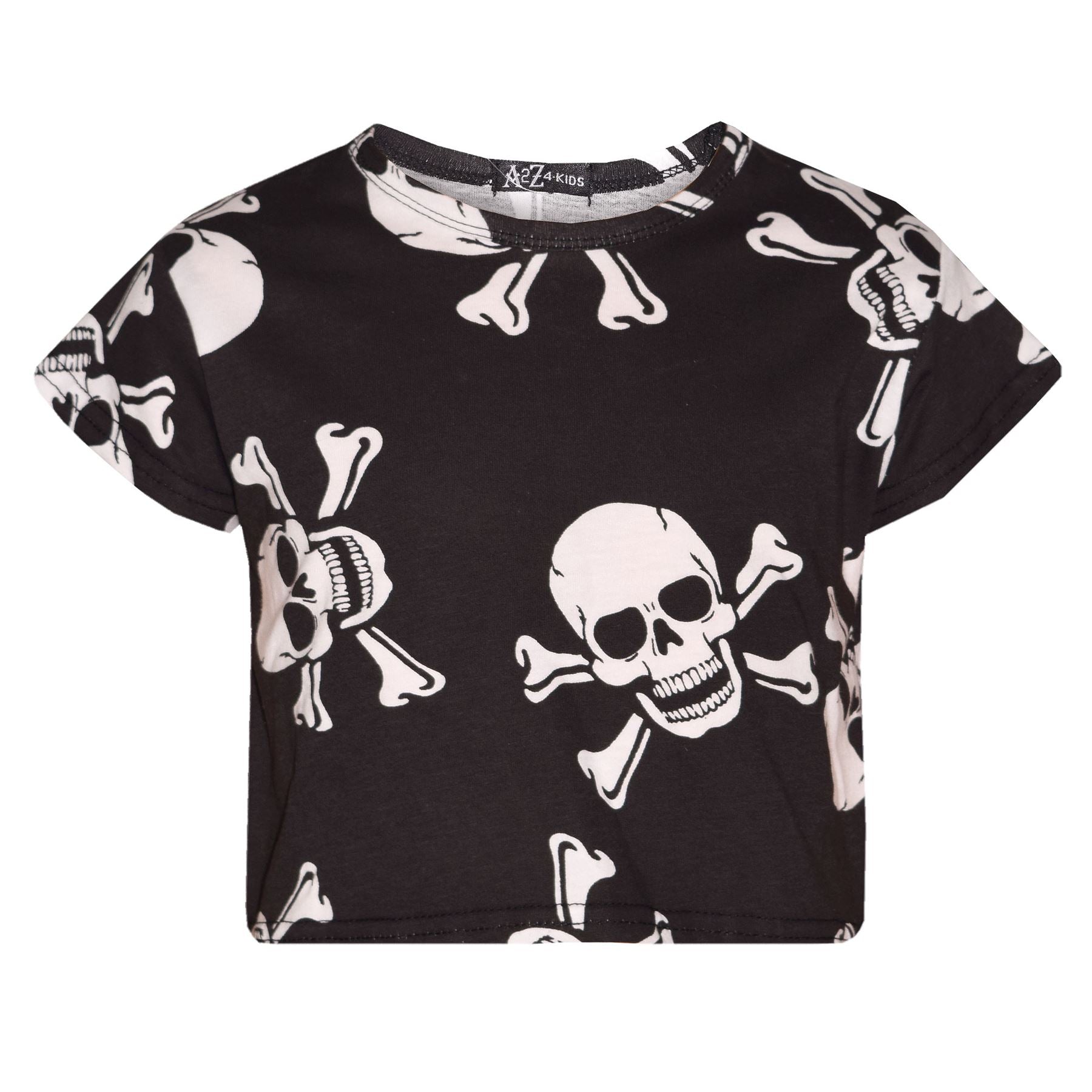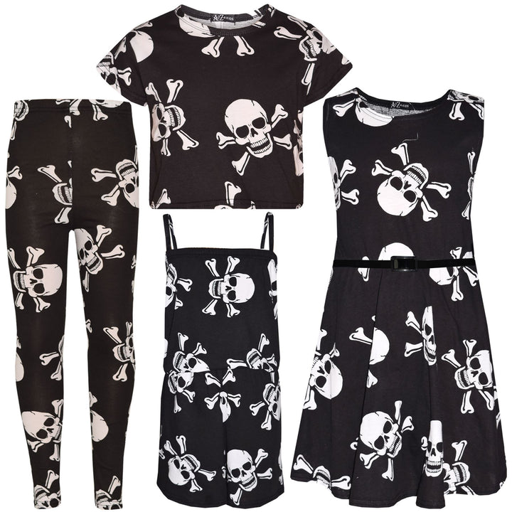 Kids Girls Boys Skull Print Crop Top Legging Skater Dress Halloween Costume 5-13