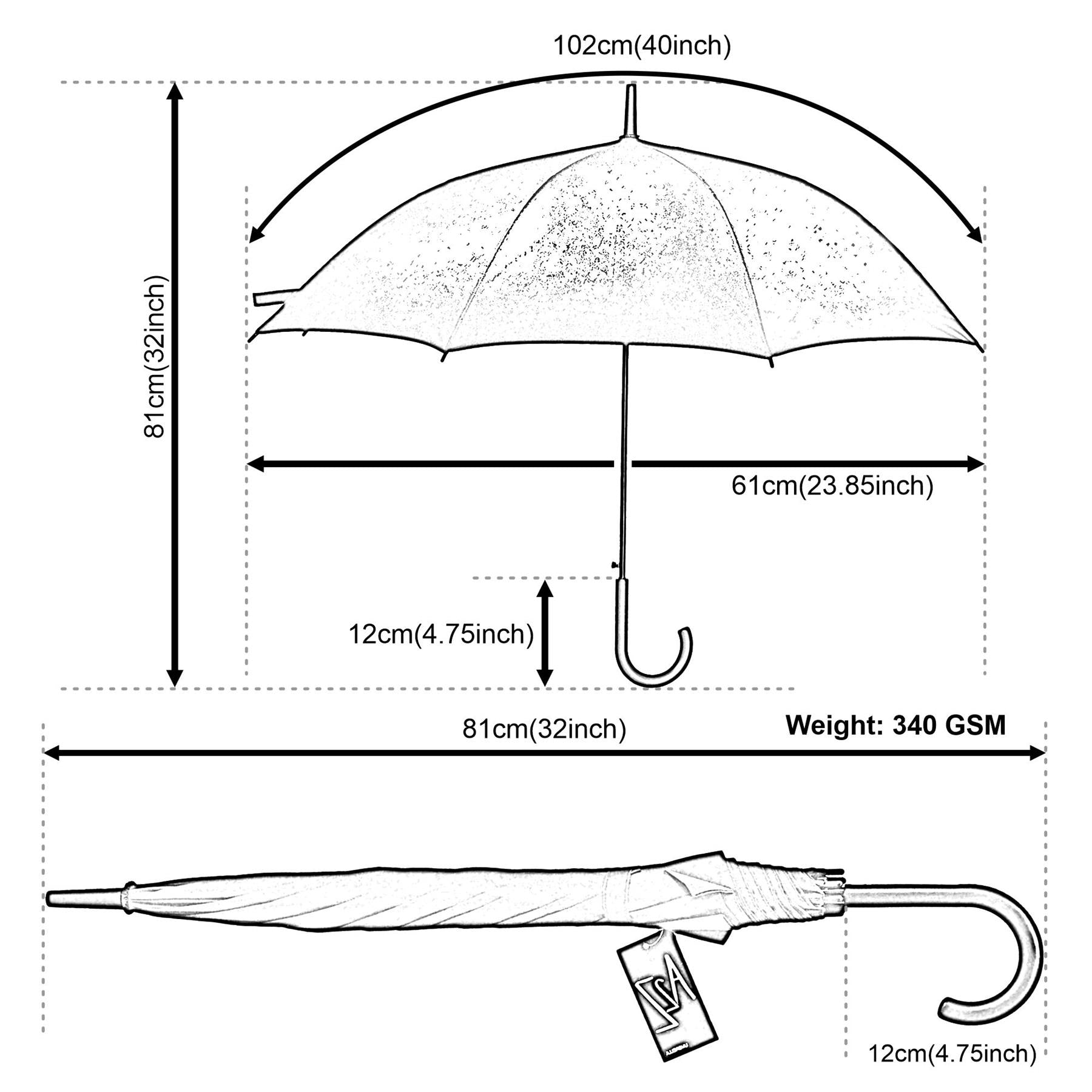Built to withstand strong gusts, this umbrella boasts a Fiber Windproof Durable Structure and a 8 Rib Firm Umbrella Stand. The high-quality construction ensures long-lasting use, making it a reliable choice for any weather.This 8-panel umbrella is made of rainproof 100% polyester, has black metallic ribs to reinforce the umbrella when open and when closed, and has a hook and loop style fastening. -