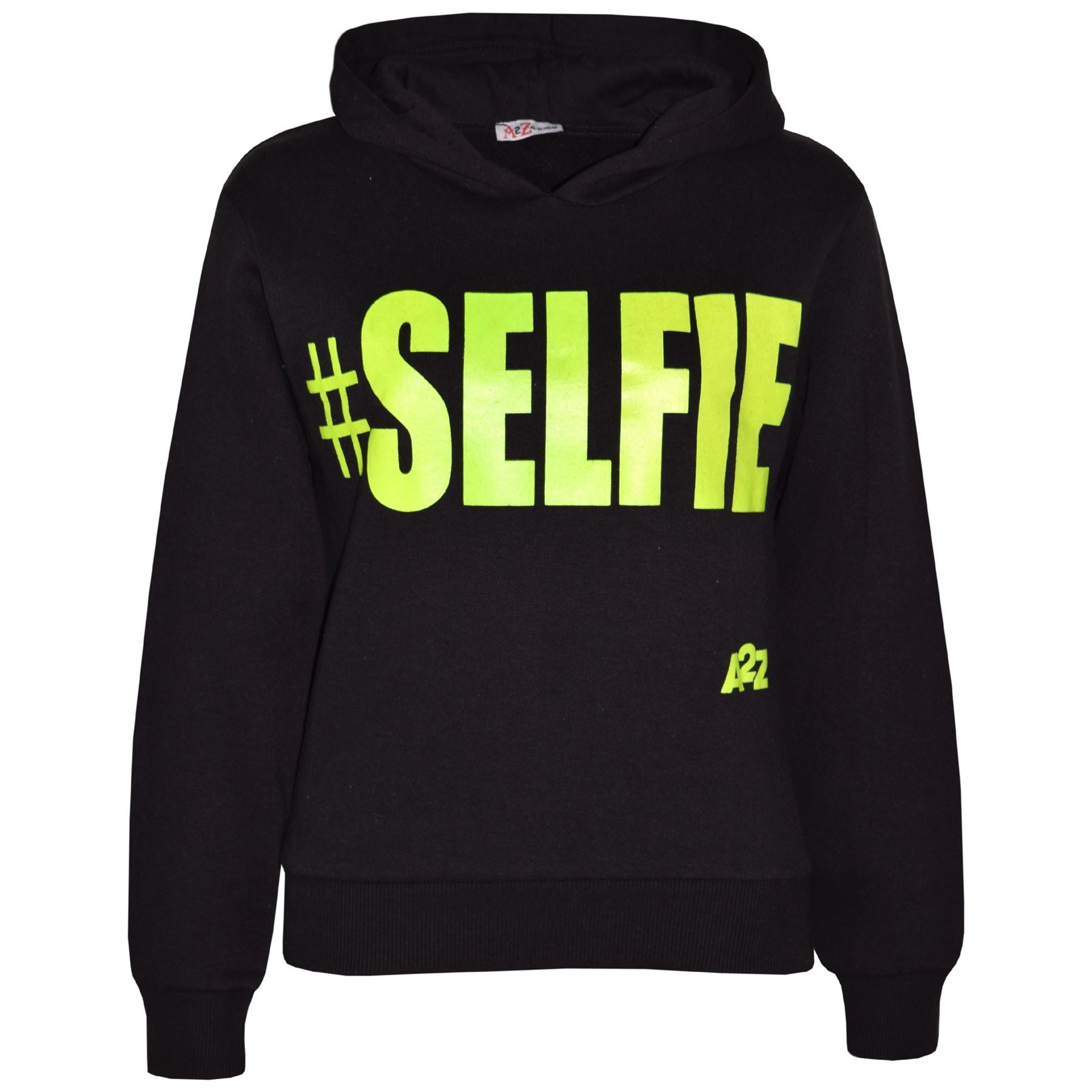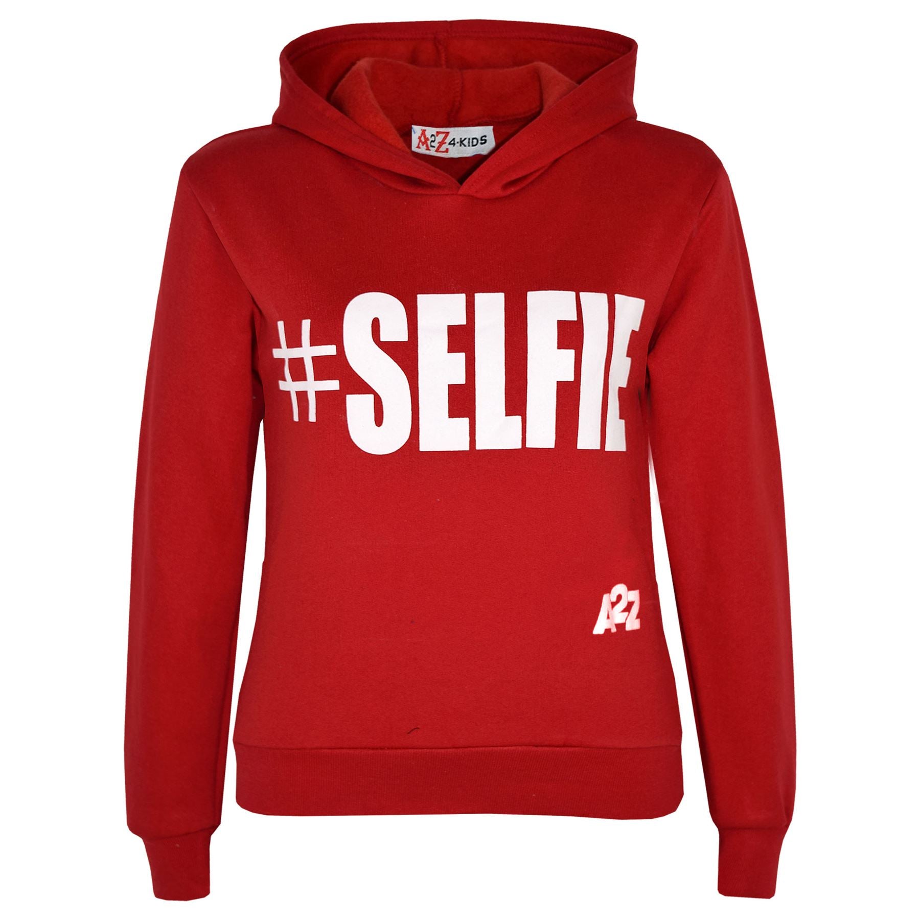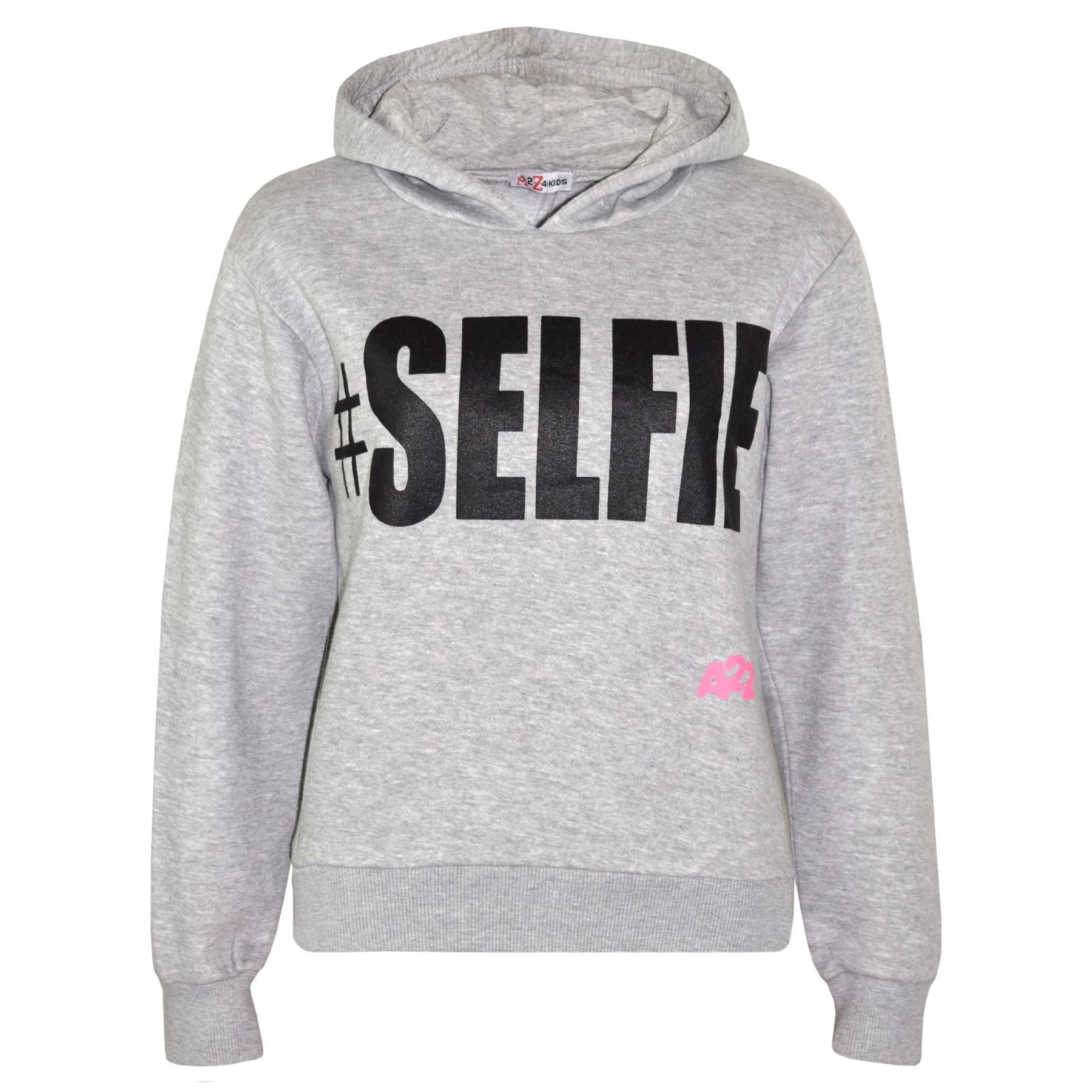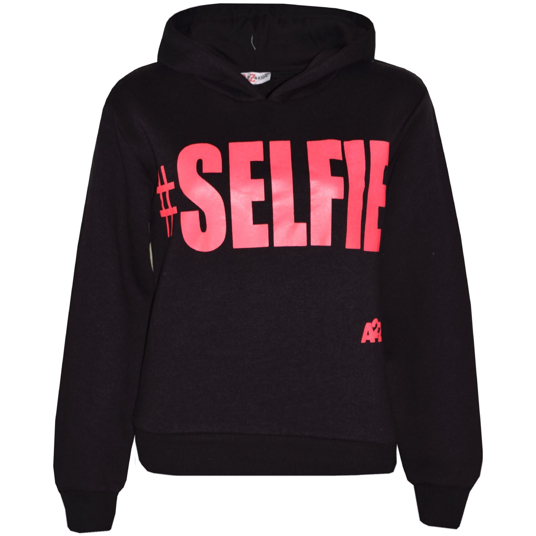 Kids Girls Boys Sweat Shirts Tops #Selfie Hooded Jumpers Hoodies New Age 2-13 Yr
