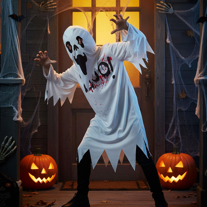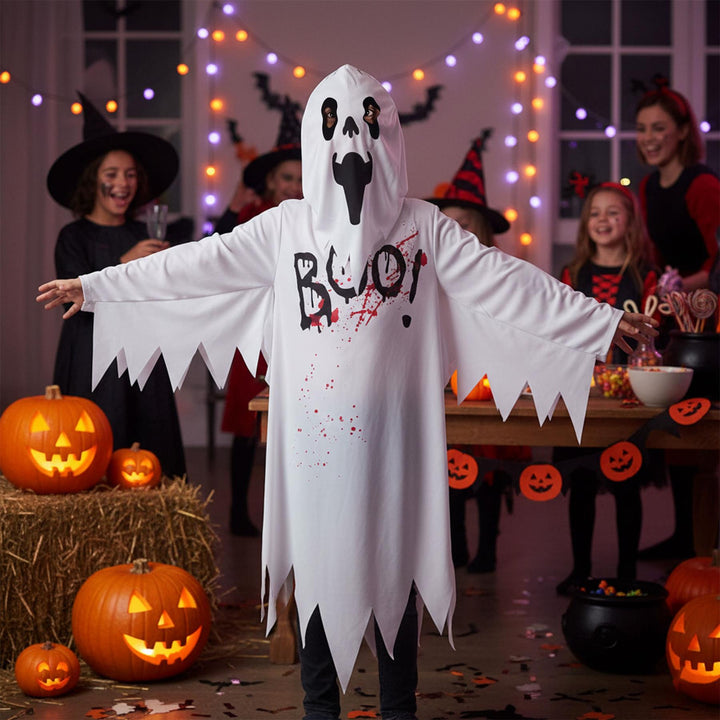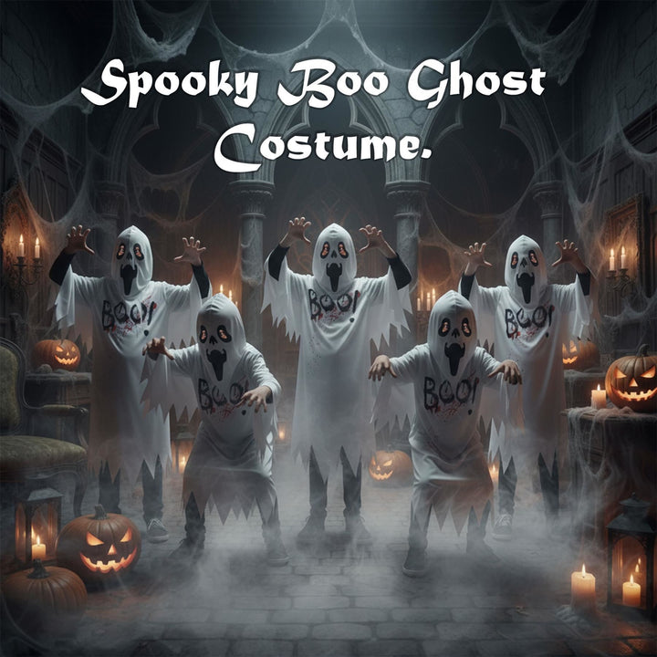 Kids Girls Boys Top BOO Printed Halloween Spooky Ghost Costume Scary White Top