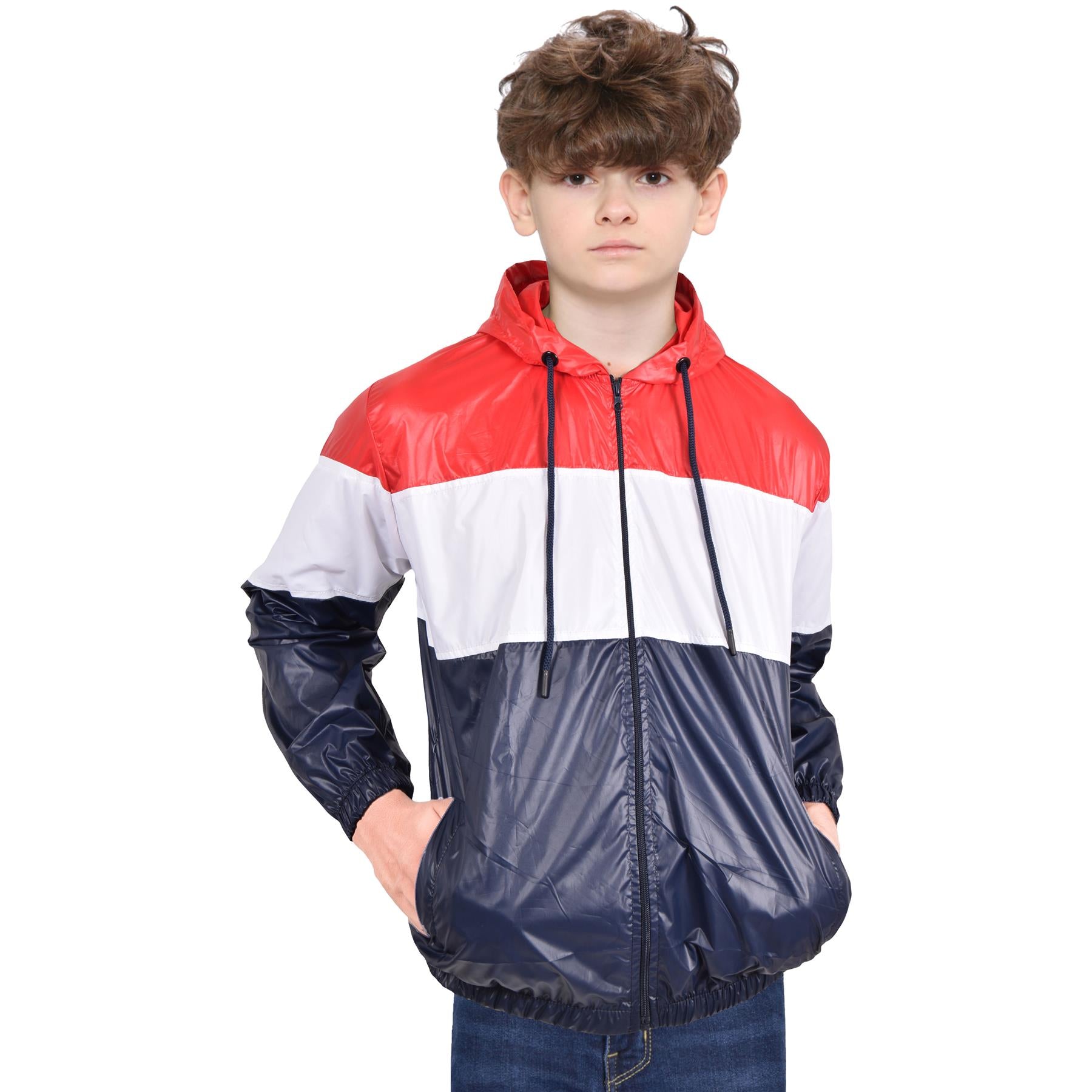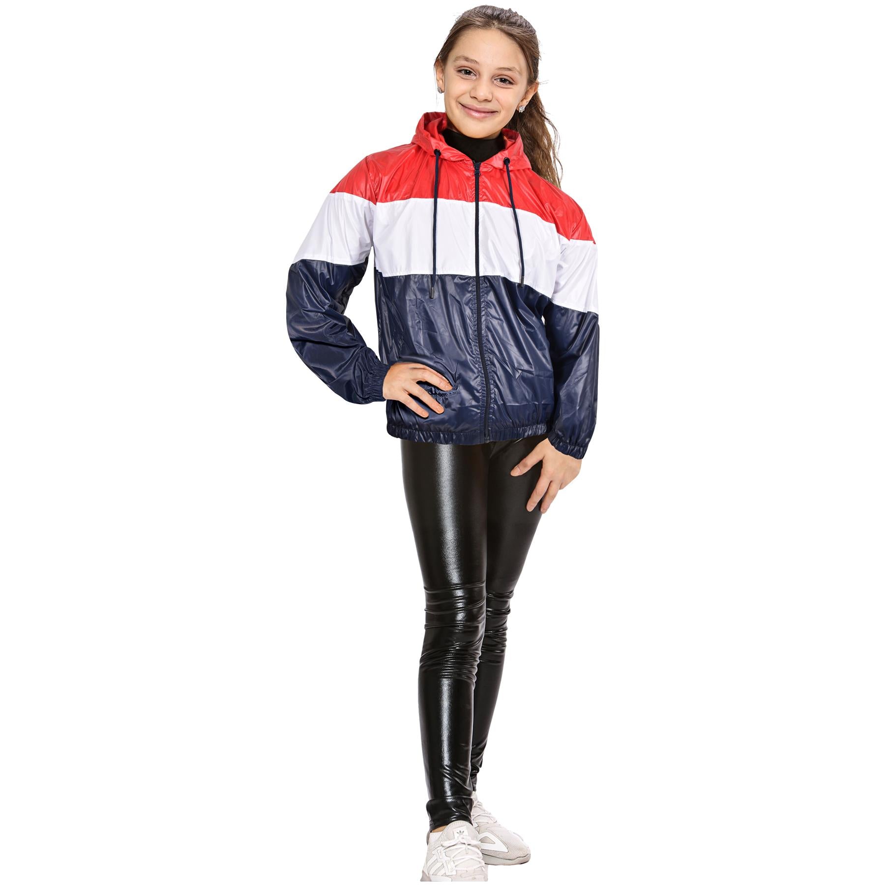 Kids Girls Boys Windbreaker Contrast Color Block Navy Hooded Jacket Rainmac Coat