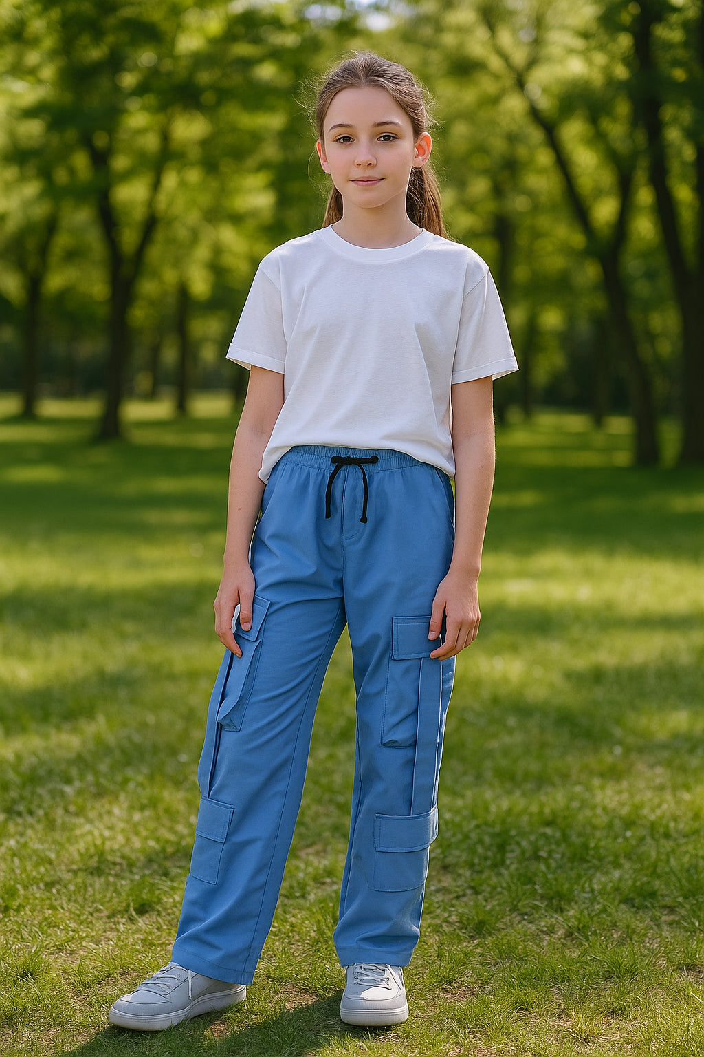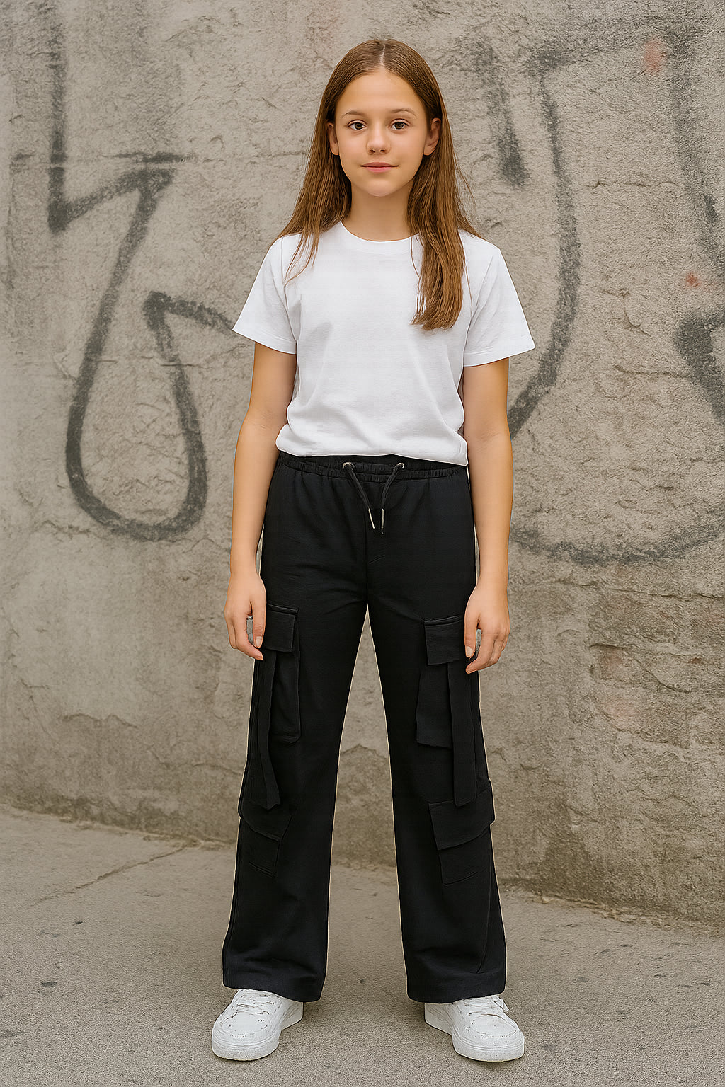 Every parent wants their child to feel secure and comfortable no matter what they are doing. Our girls jogger trousers are specifically designed to prioritize your little ones safety and comfort. These pull-on sports pants are effortless for girls to wear, providing complete freedom of movement. The cargo flared trousers for girls also allow for ease of movement and all-day comfort. -
