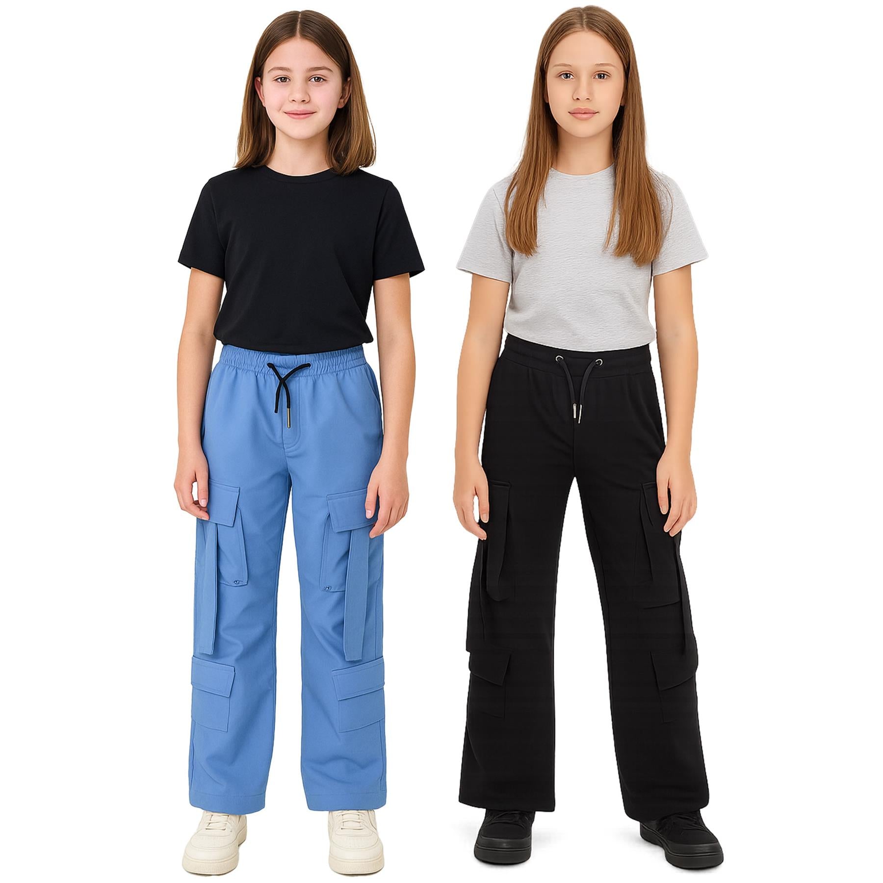Kids Girls Cargo Trousers Elasticated Waist Comfortable Joggers Activewear Pants