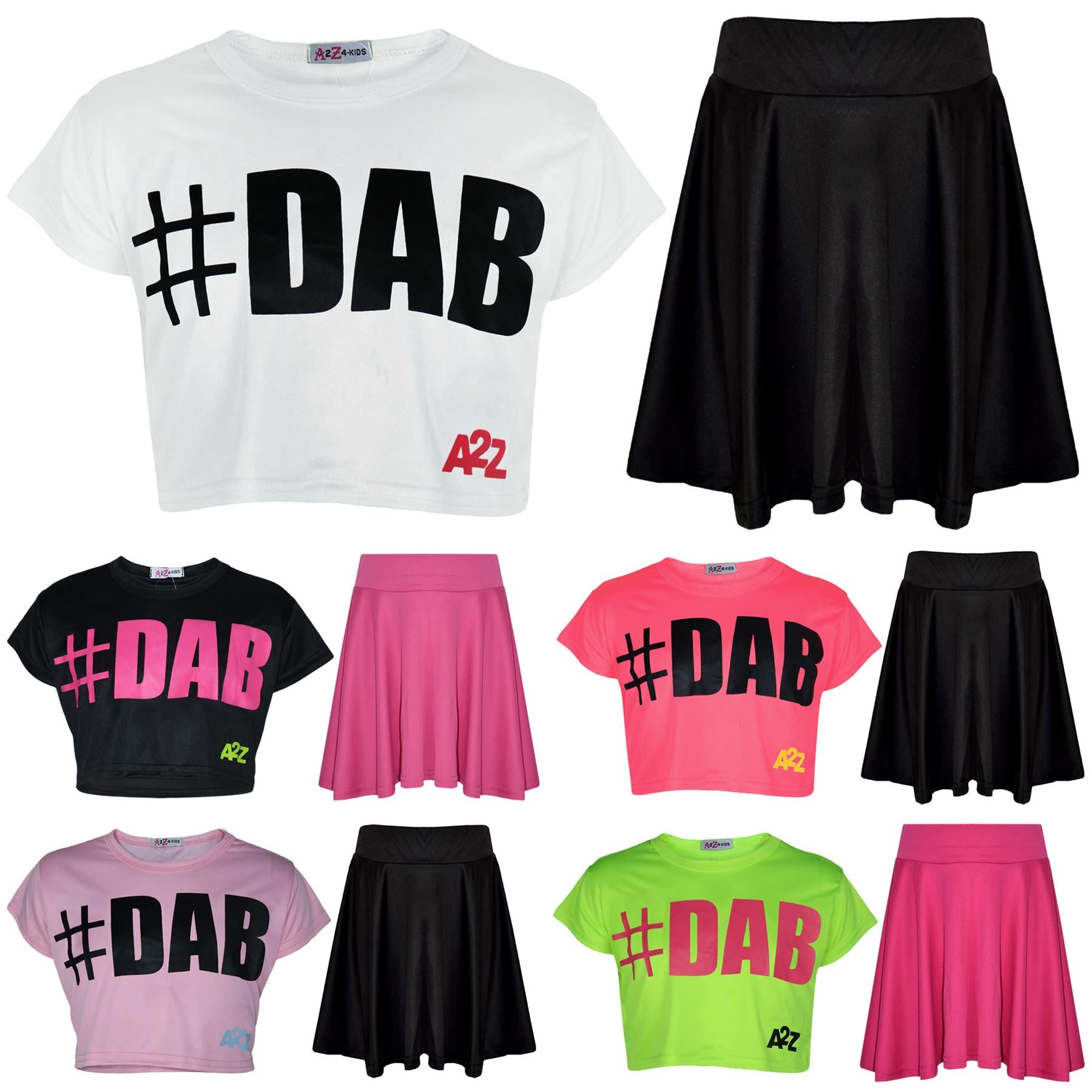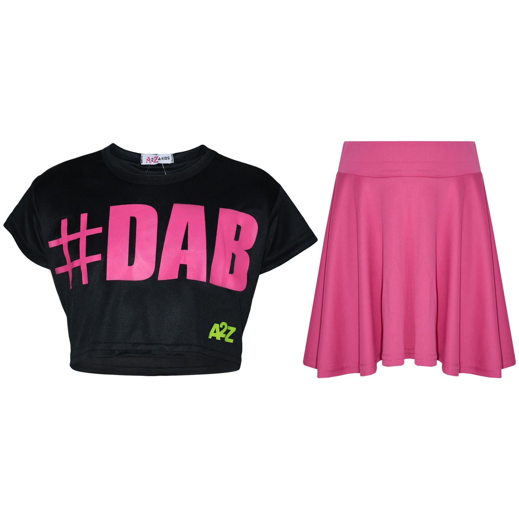 Kids Girls Crop Top #DAB Trendy Stylish Floss Fashion T Shirt & Skirt Set 5-13Yr