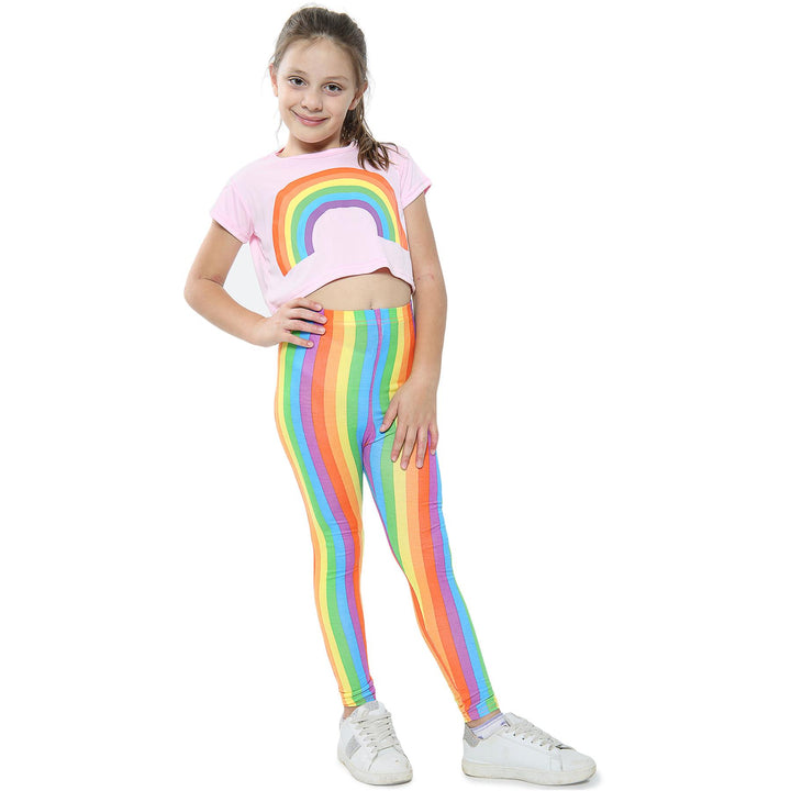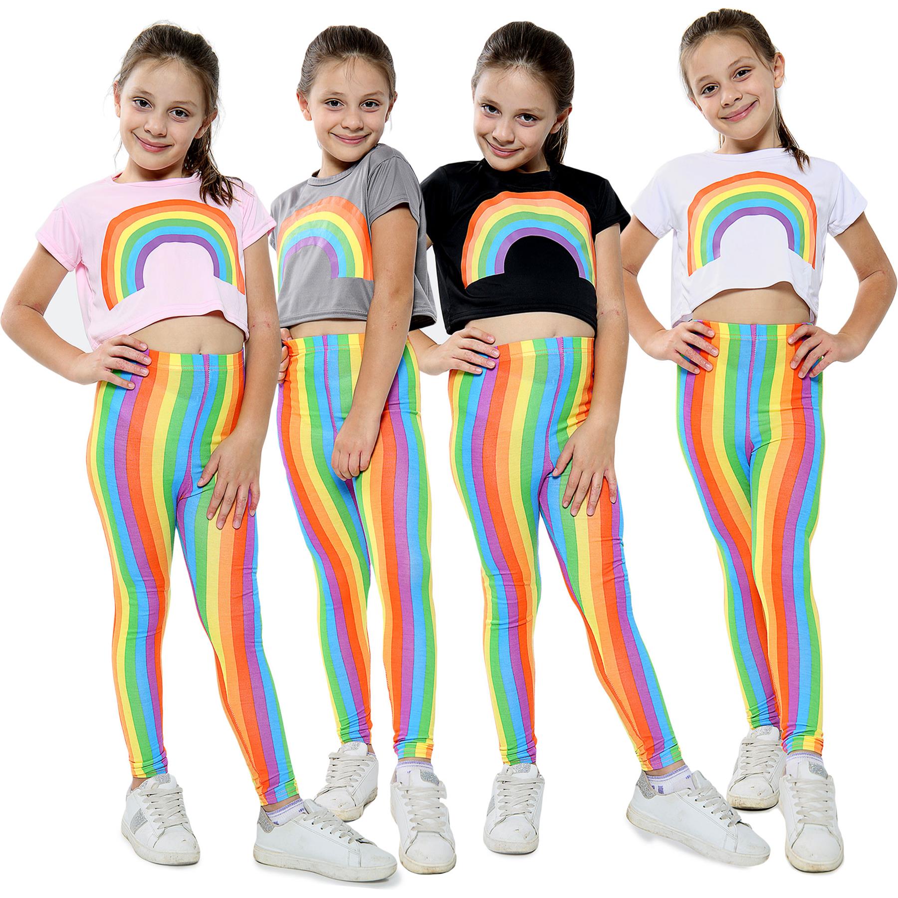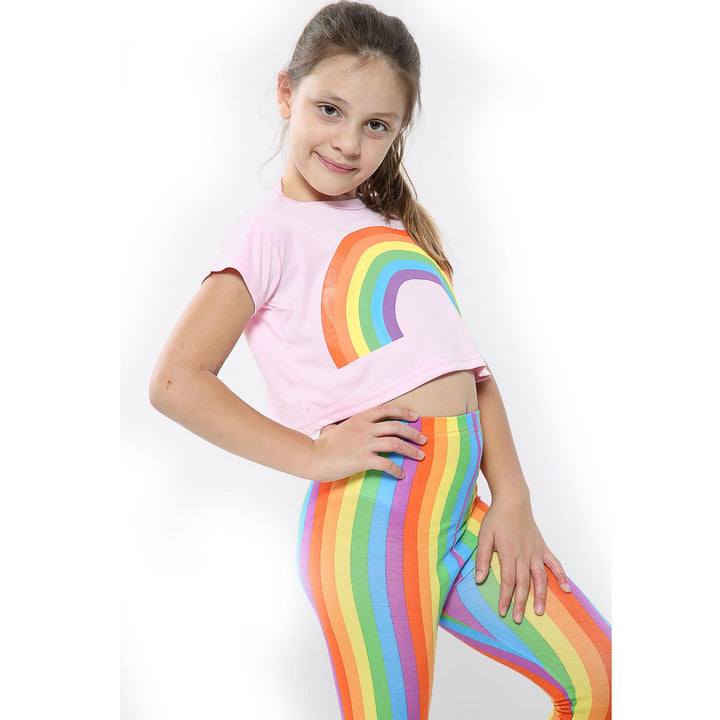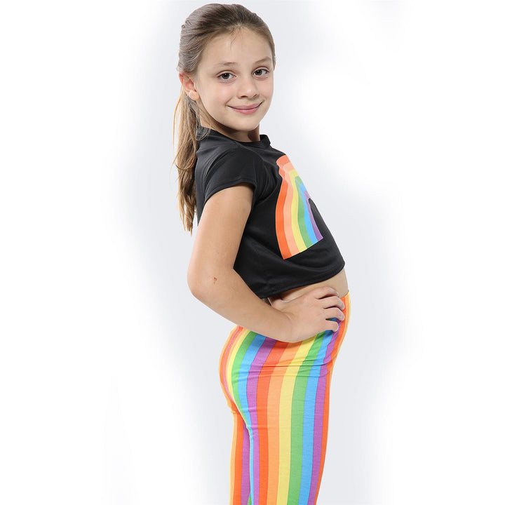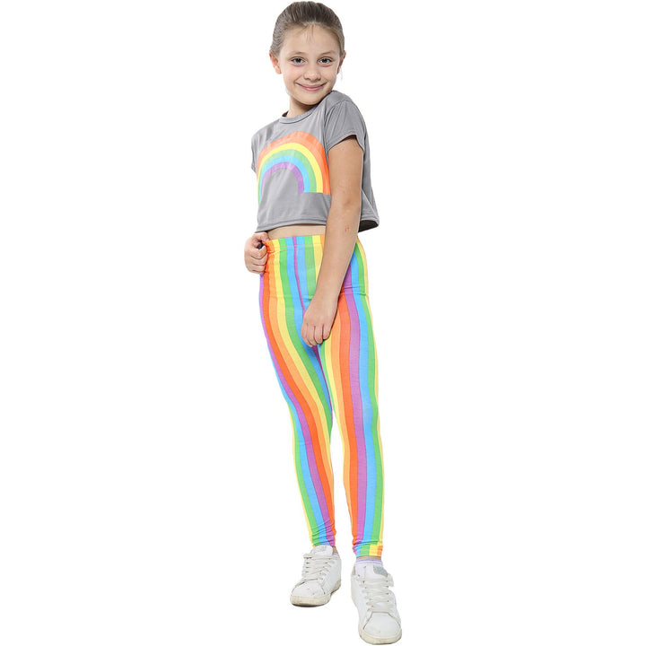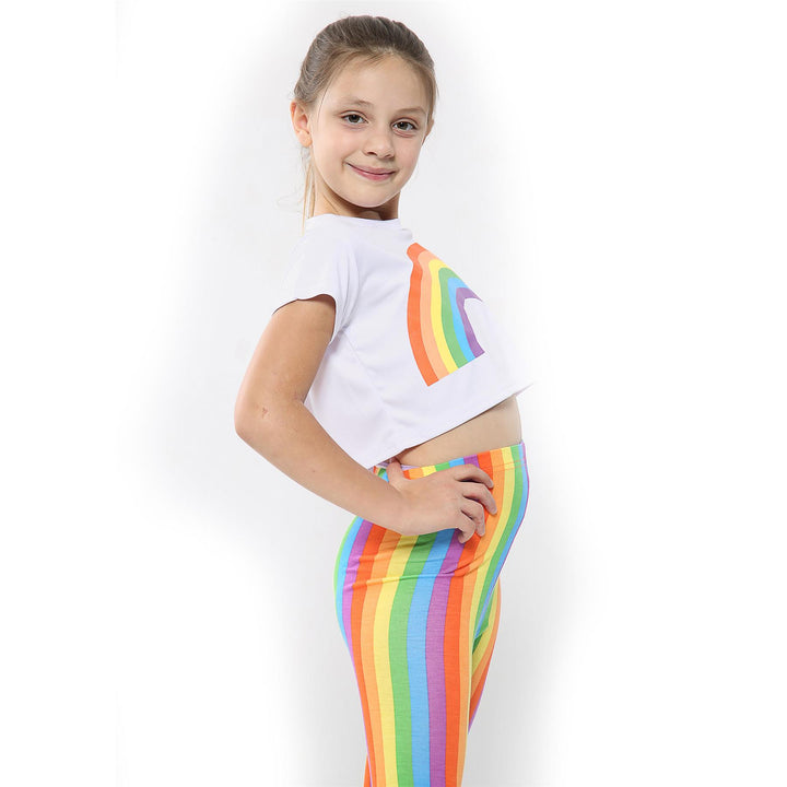Kids Girls Crop Top & Legging Set Rainbow Fashion Two Piece Outfit Clothing Set
