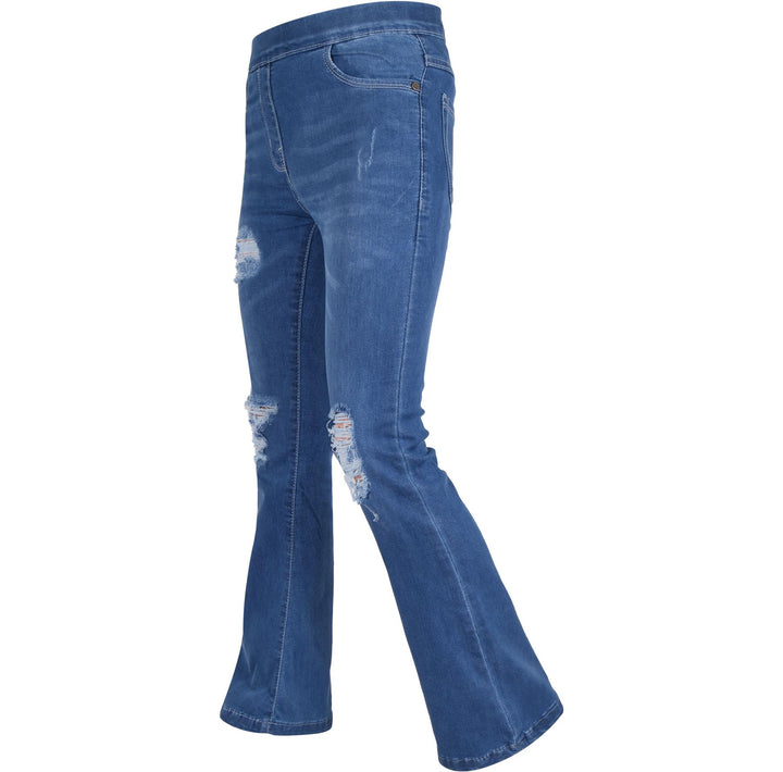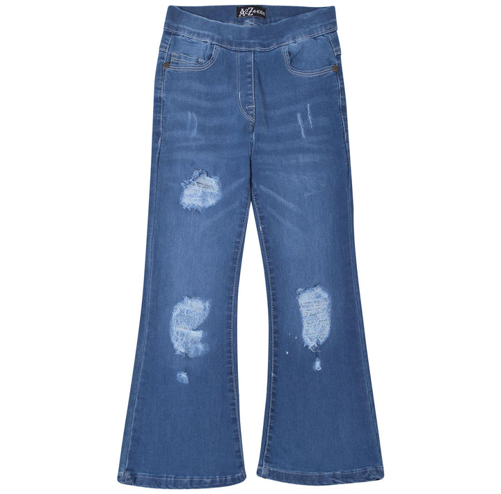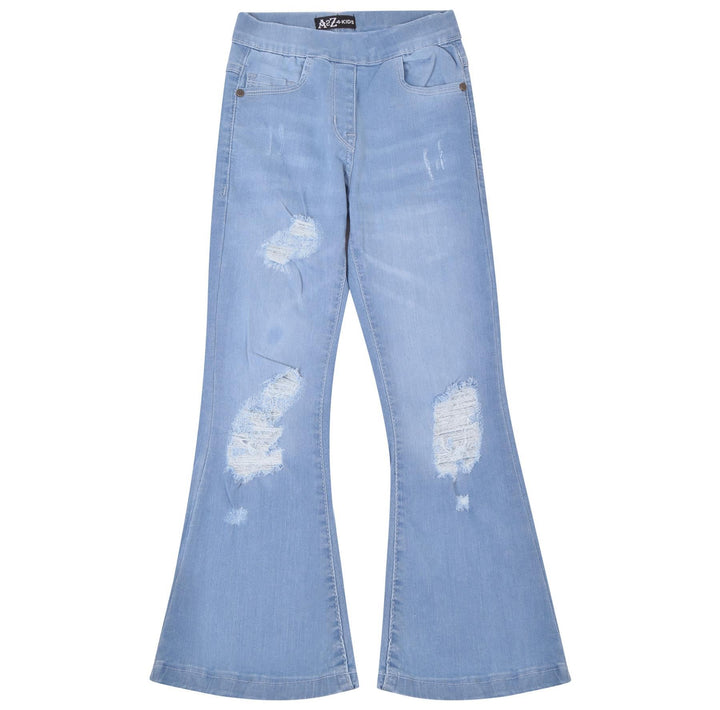 Kids Girls Denim Jeans Comfort Stretchy Flared Bell Bottom Ripped Fashion Pants