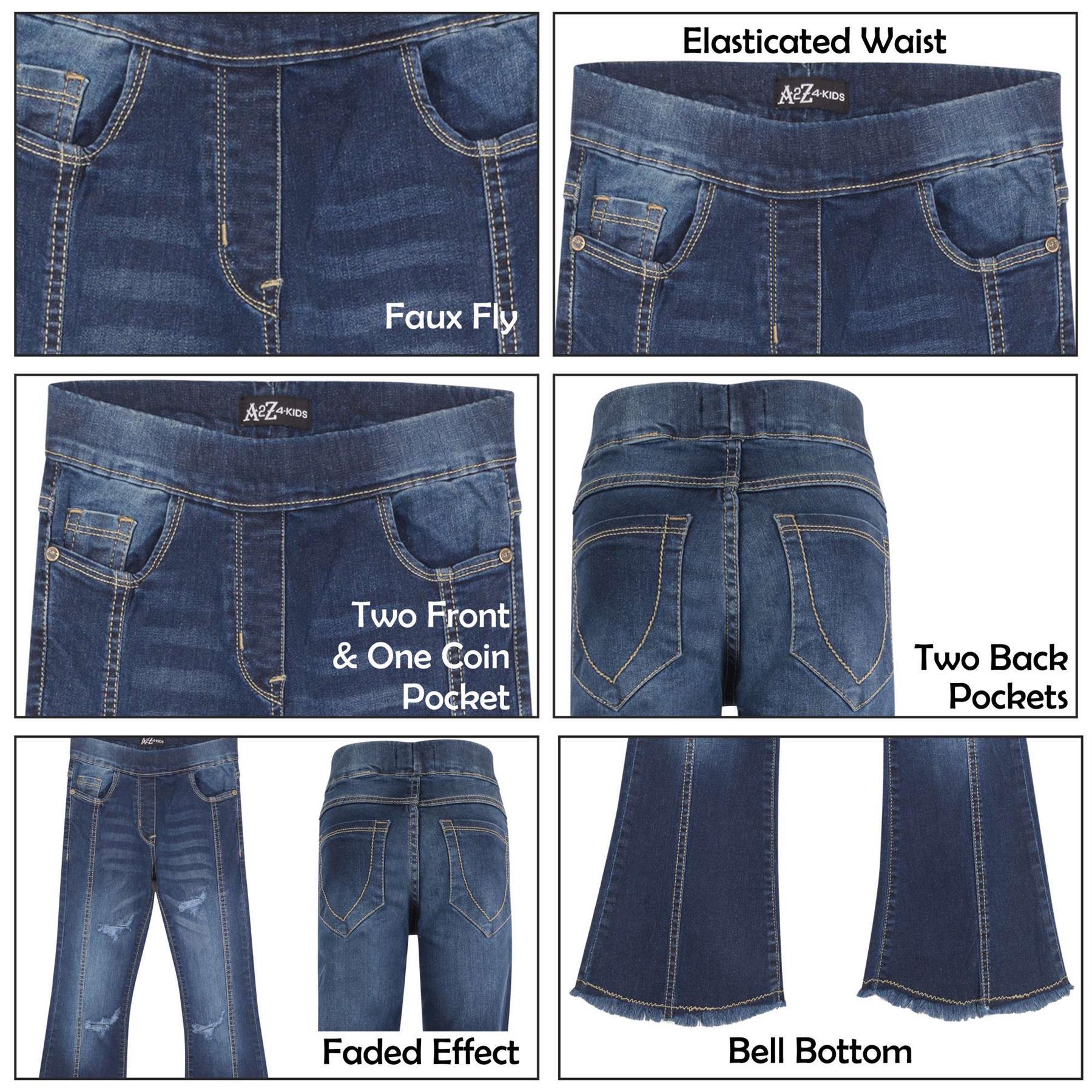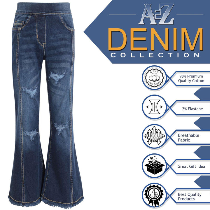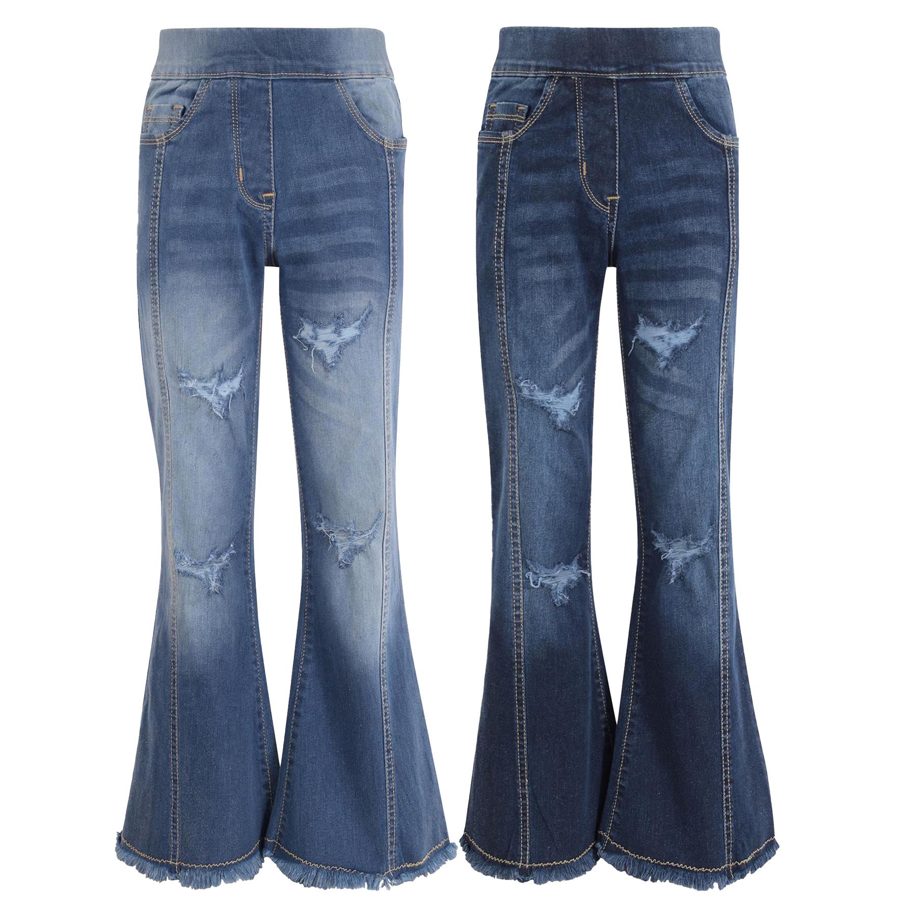 Kids Girls Denim Jeans Stretch Flare Ripped Bell Bottom Pants Jeggings Pants