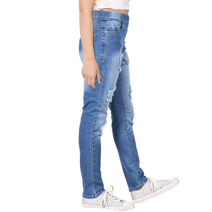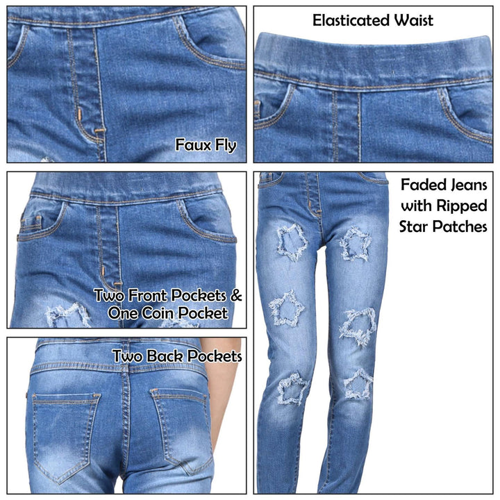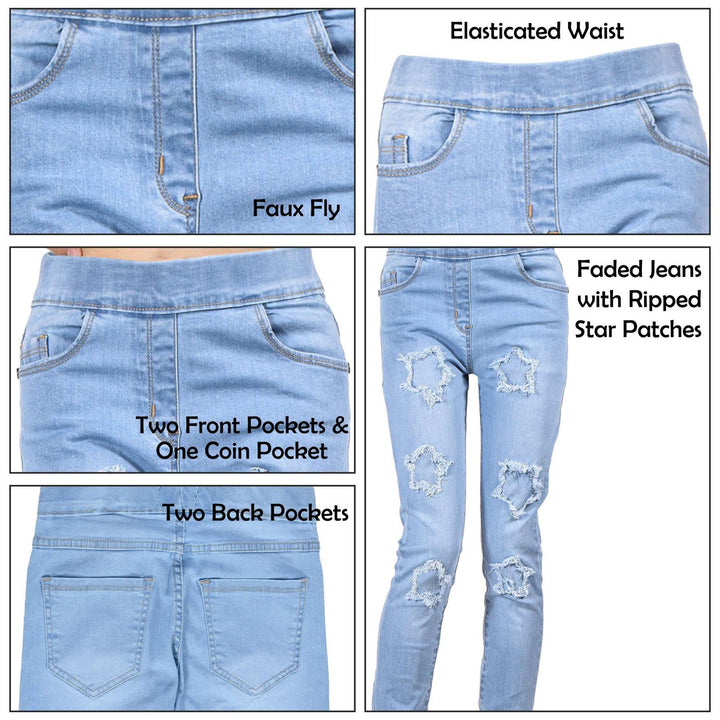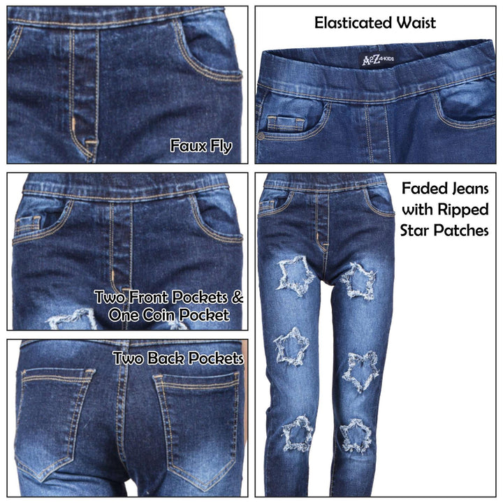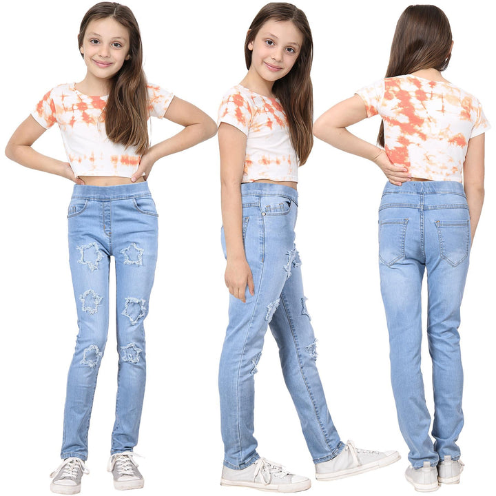 Kids Girls Denim Stars Ripped Jeans Comfort Stretchy Skinny Fashion Pants