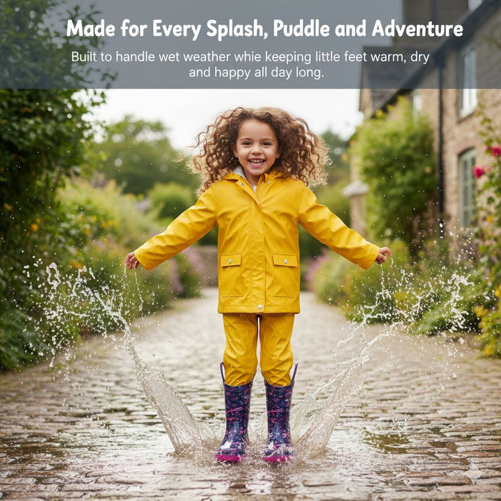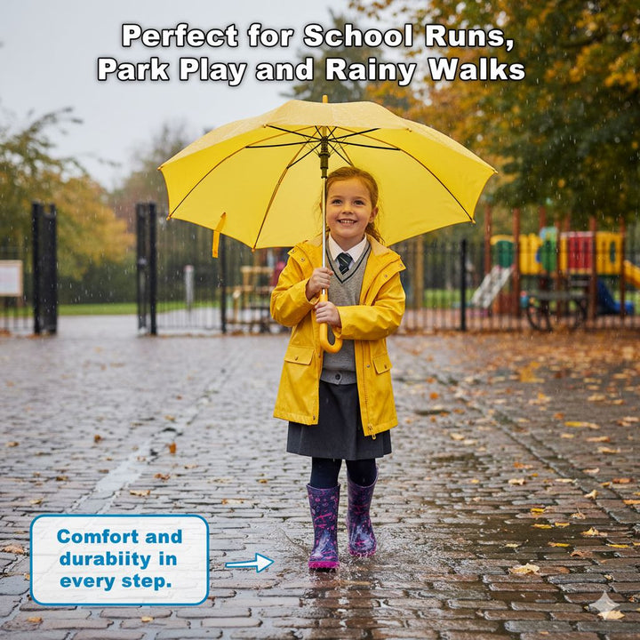 Made from high-quality PVC upper and sole for full waterproof protection. Designed to keep feet dry and comfortable during rain or muddy outdoor play, these boots are easy to clean and maintain, ideal for everyday wear.