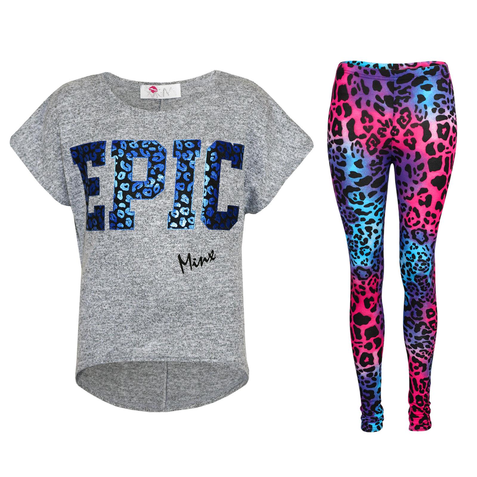 Kids Girls " EPIC " Printed Stylish Crop Top & Fashion Legging Set 7-13 Years