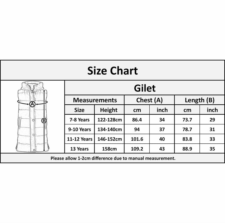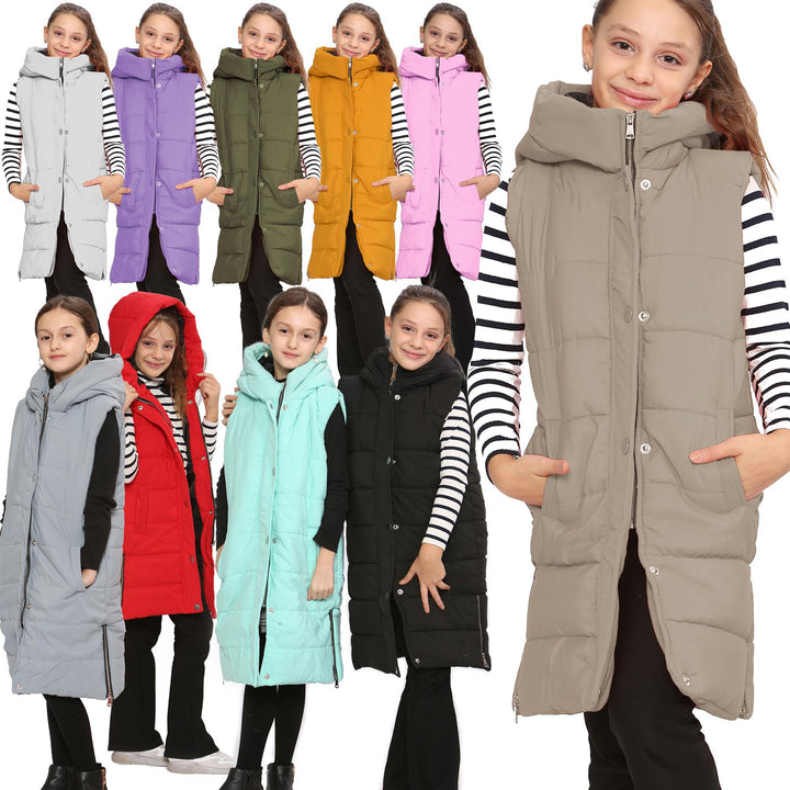 Kids Girls Fashion Oversized Gilet Long Line Style Jacket Long Sleeveless Coat