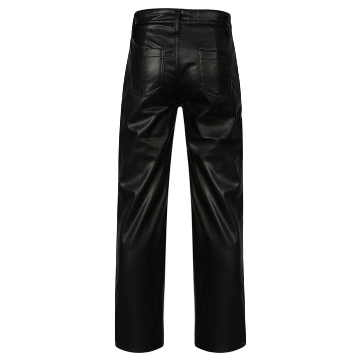 Made from soft yet durable PU leather, the trousers have a supple texture with a subtle sheen that catches the light without being too flashy. They are lined for comfort and offer enough flexibility to move freely while retaining their structured, tailored shape throughout the day.