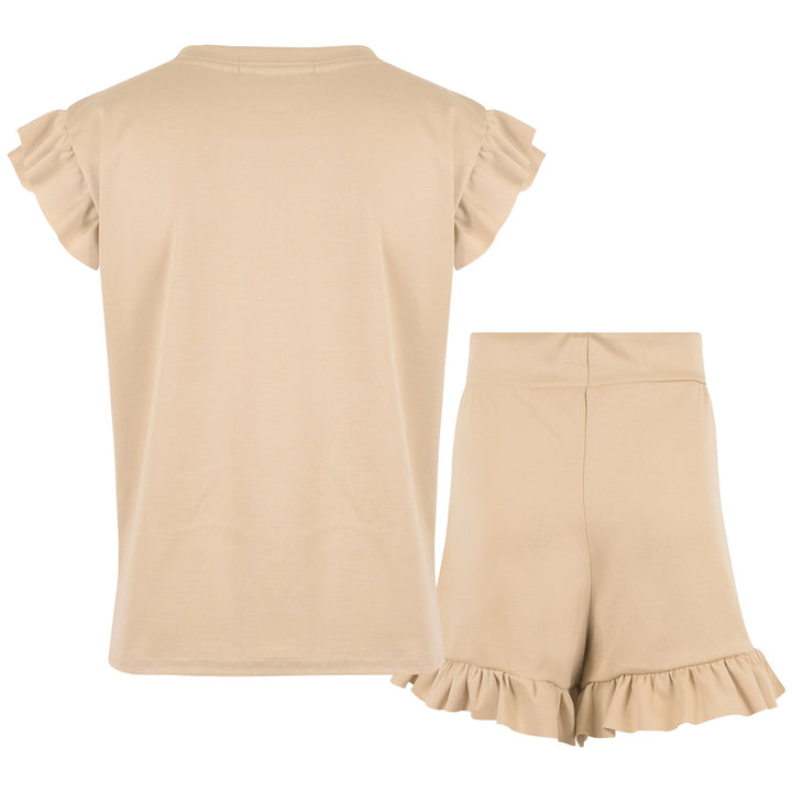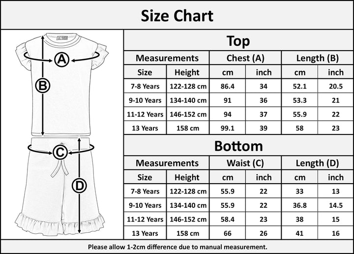 Manufactured using high quality materials - 95% Polyester 5% Elastane - this top and Shorts set is made for supreme chilled out comfort. Featuring a flared cap sleeves t-shirt with the decorative drawcords hot shorts,. Check out our size chart for best fitting, for ages 7-13. -