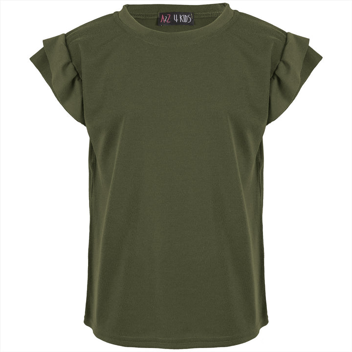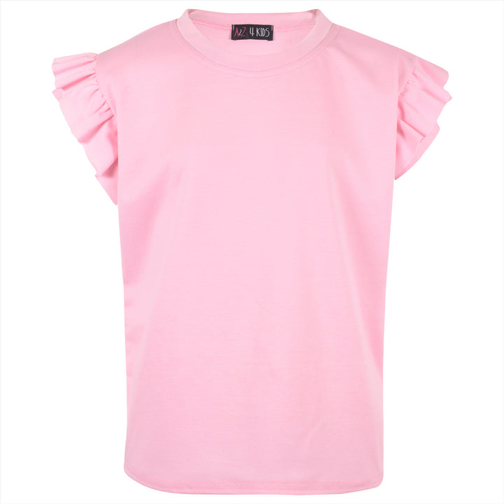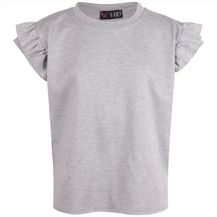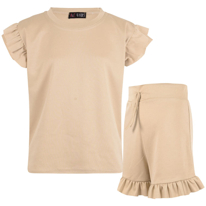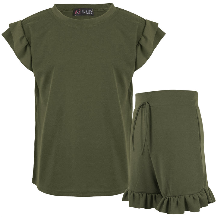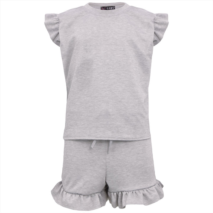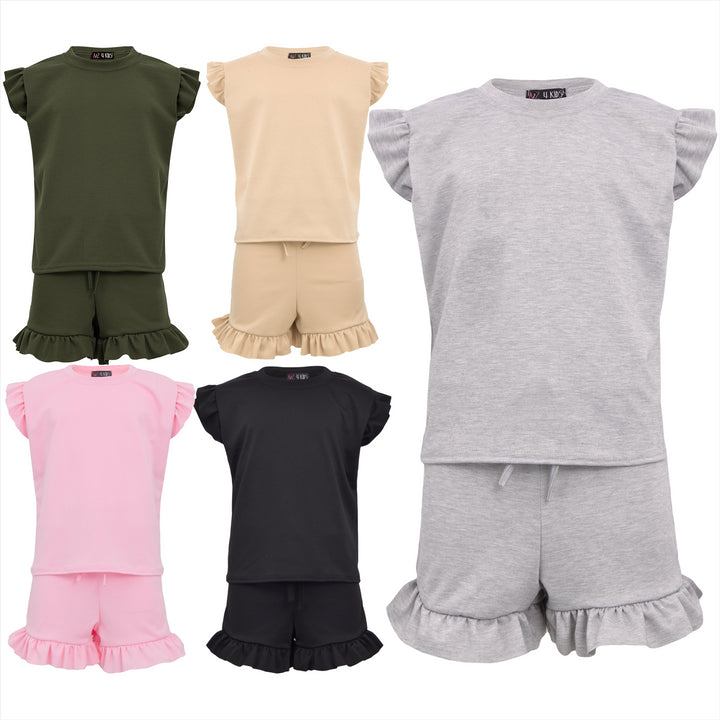 Kids Girls Flared Cap Sleeves Crop Top Plain Color T Shirt Top & Hot Shorts Set