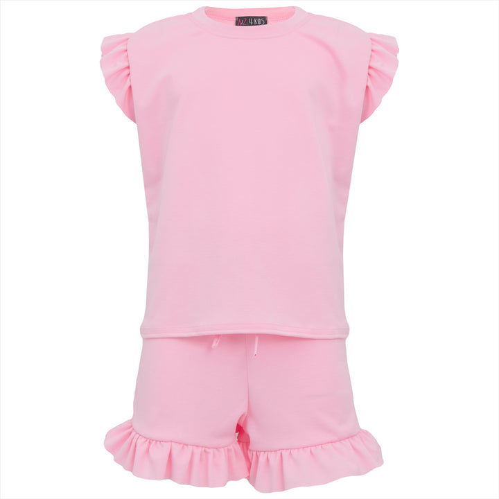 Stand out in our flared sleeves top & decorative drawcords hot shorts set, whether your having a lazy day at home or going out with friends, your child will look awesome in this super trendy look. Available in different colours, the hardest thing you have to do is pick your favorite. Suitable for any activity from relaxing at home to sports activities outside! It is designed to be soft and breathable for ultimate comfort, and it will have your youngsters looking cool and trendy. -
