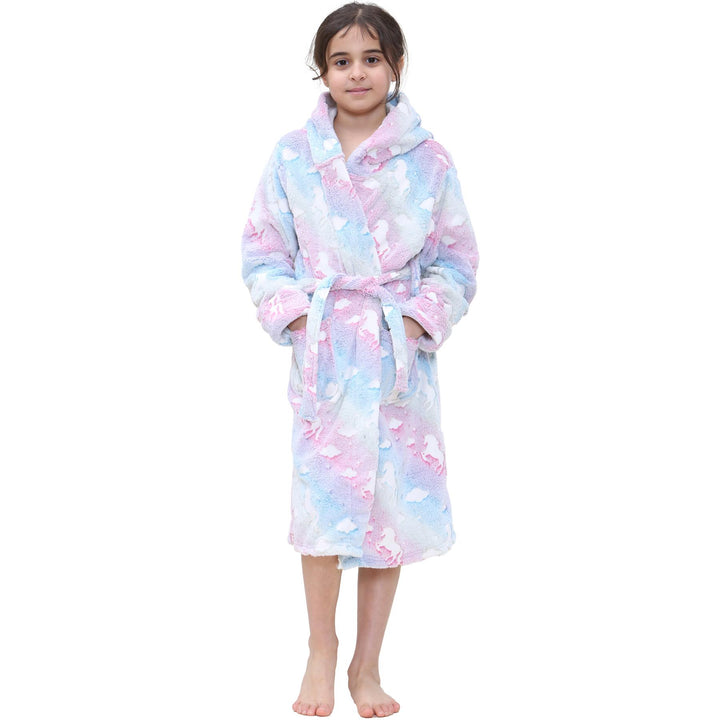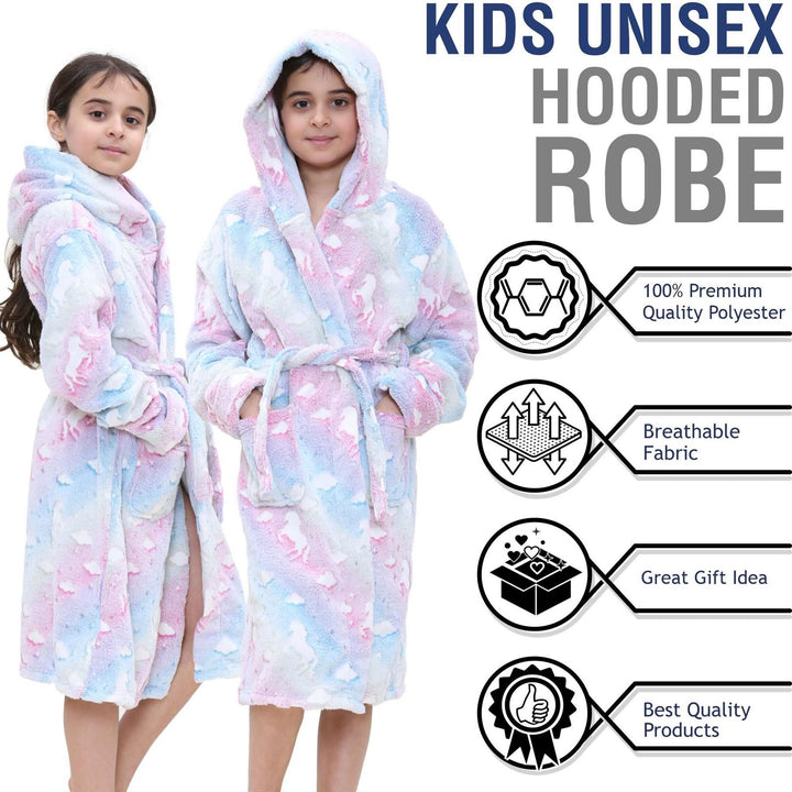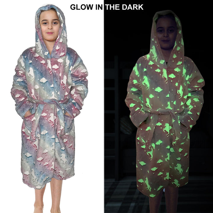 Kids Girls Fleece Glow In The Dark Sherpa Hooded Unicorn Dressing Gown Soft Robe