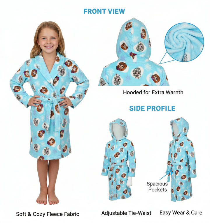 Kids Girls Frozen Dressing Gown In Blue Age 2-10 Years
