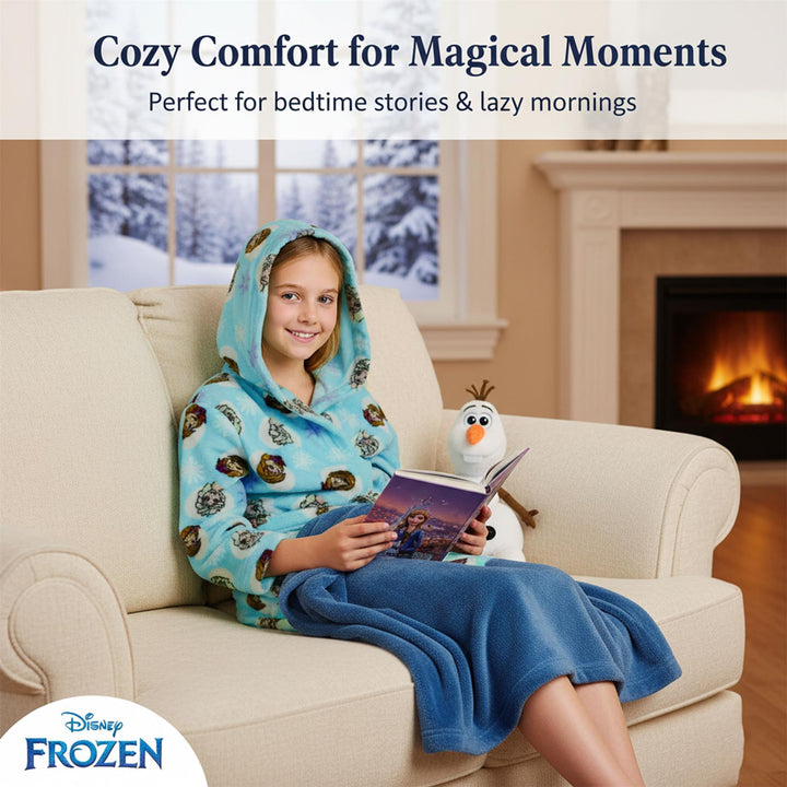 Disney Frozen dressing gown. Made of the highest quality, your little one will love the softness of this gown, which features Elsa and Anna in a blue all-over print.