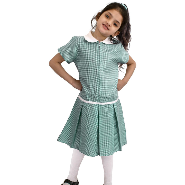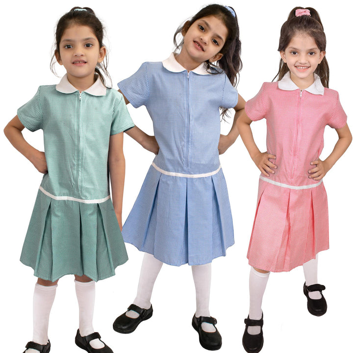 Our Uniform Gingham School Dresses are available in a range of colors, including Blue, Red and Green. These versatile color options ensure your child can adhere to the school's dress code while expressing their individuality and personal style with a spectrum of choices. -