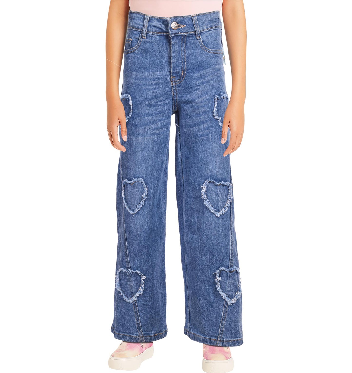 Crafted with love, these jeans feature adorable heart-shaped patches with frayed edges, uniquely designed and artistically placed on both legs. The playful yet chic heart pattern gives these jeans a distinctive look that stands out. Each heart is thoughtfully crafted using a careful distressing technique, offering a handcrafted, vintage-inspired charm. Your little one will shine in these expressive and fashionable jeans! -