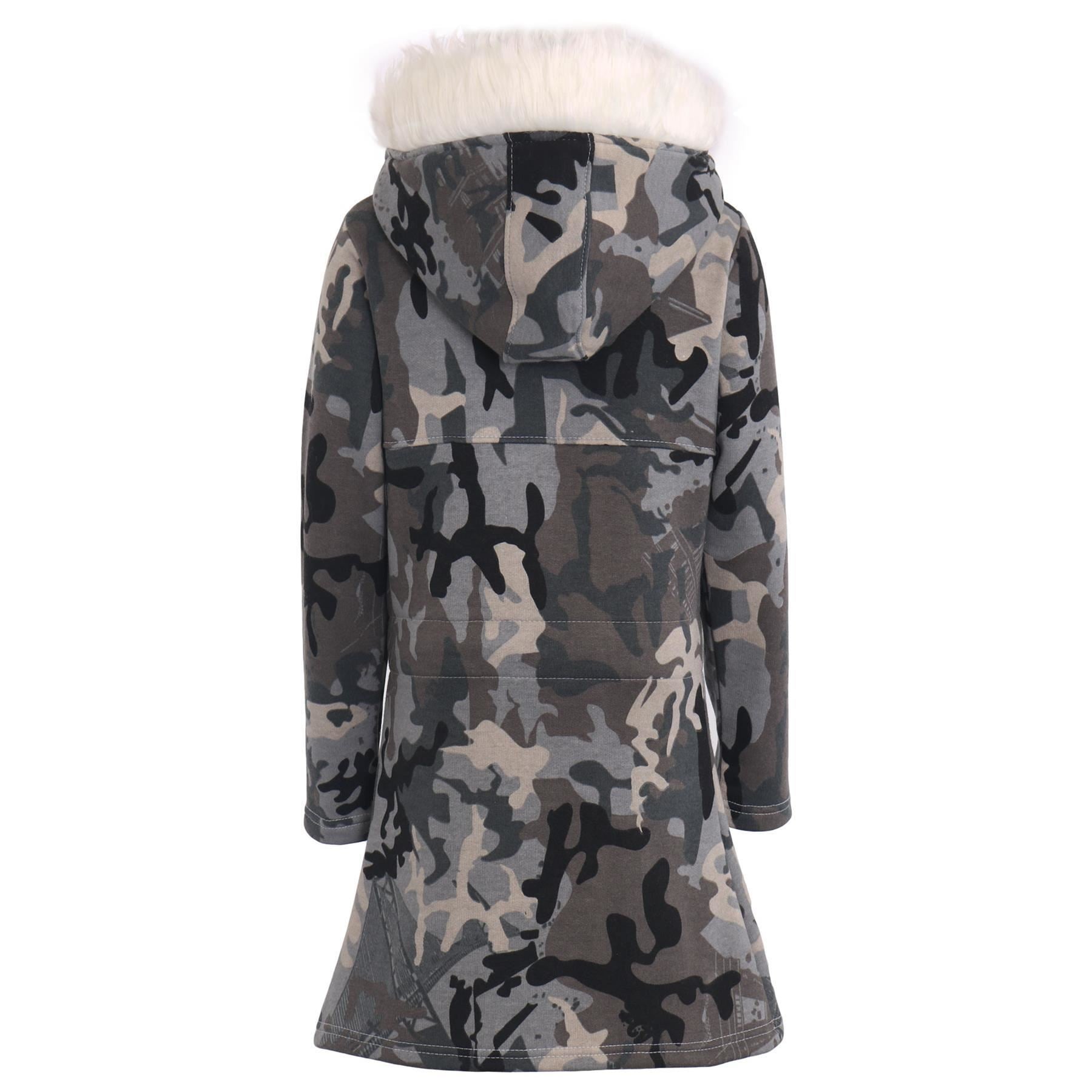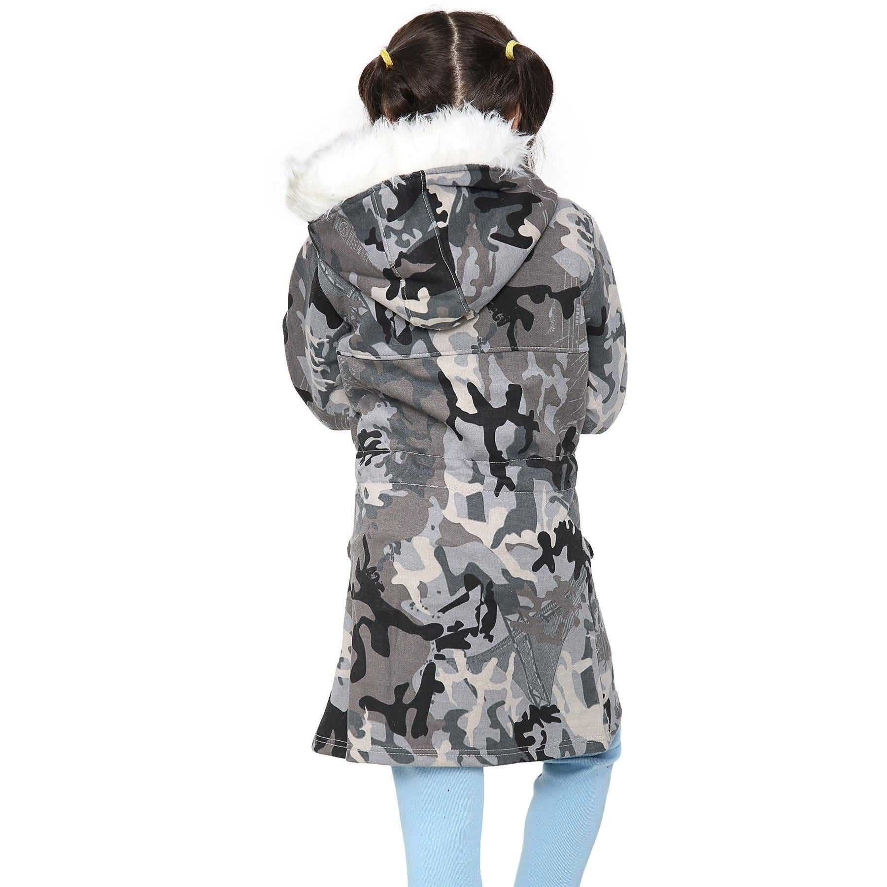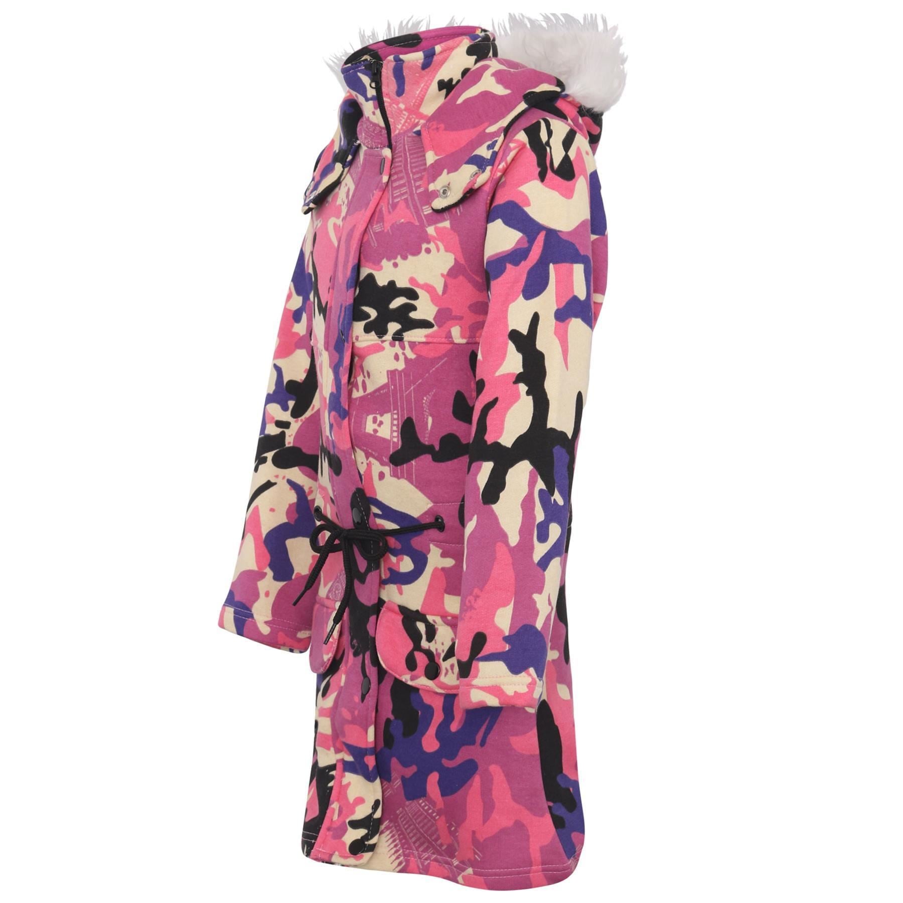 Kids Girls Hooded Camo Parka Jacket Faux Fur Coat New Fashion Age 5-13 Years