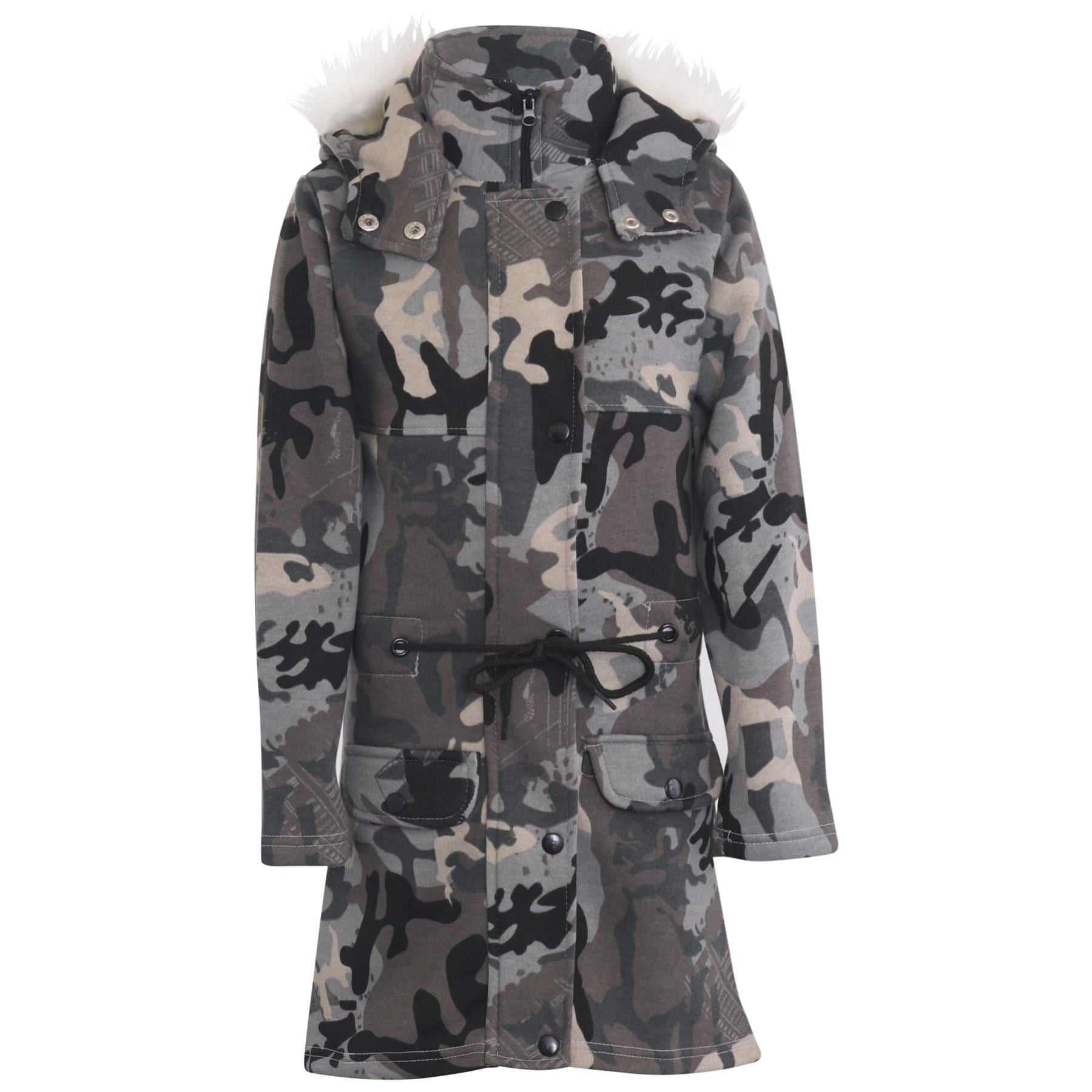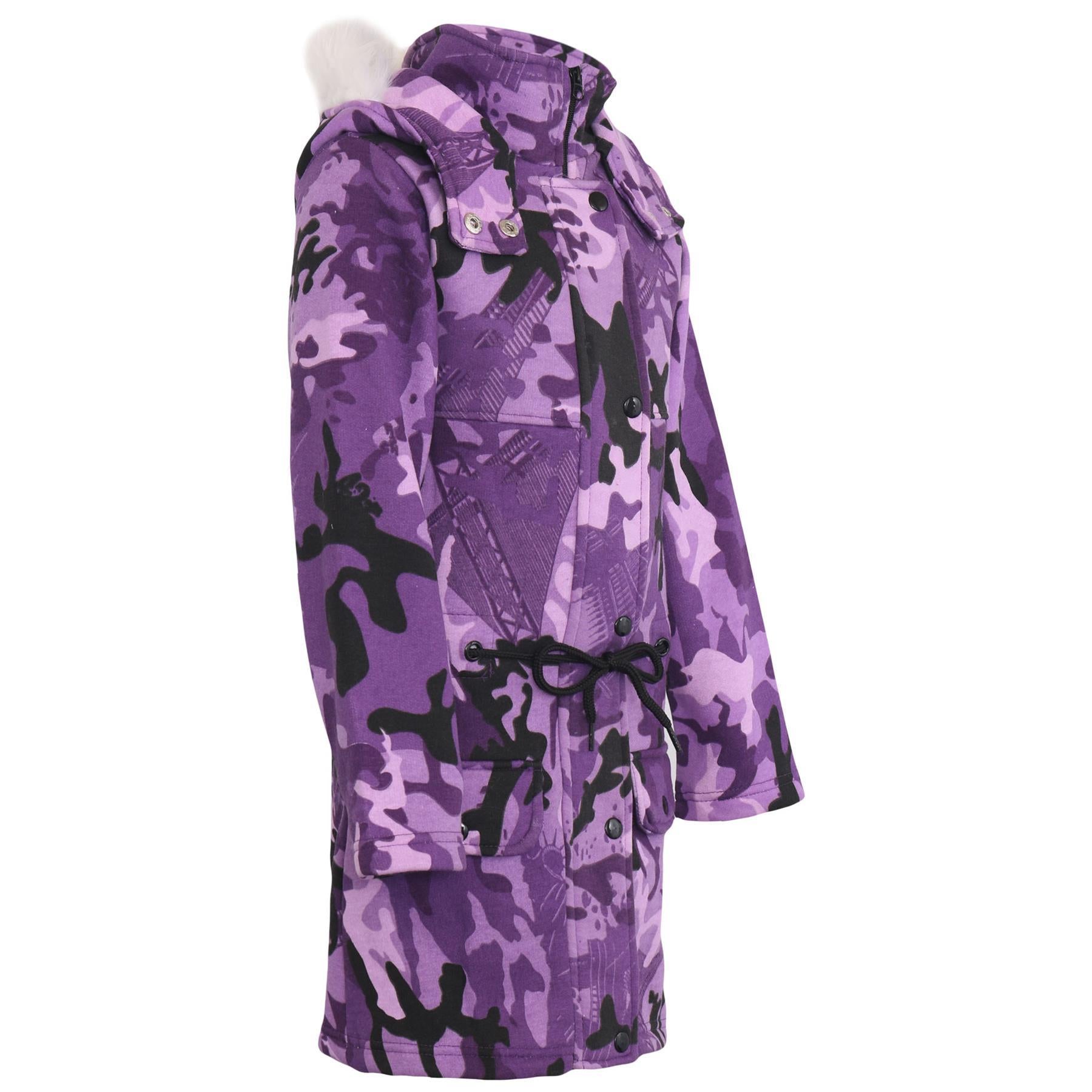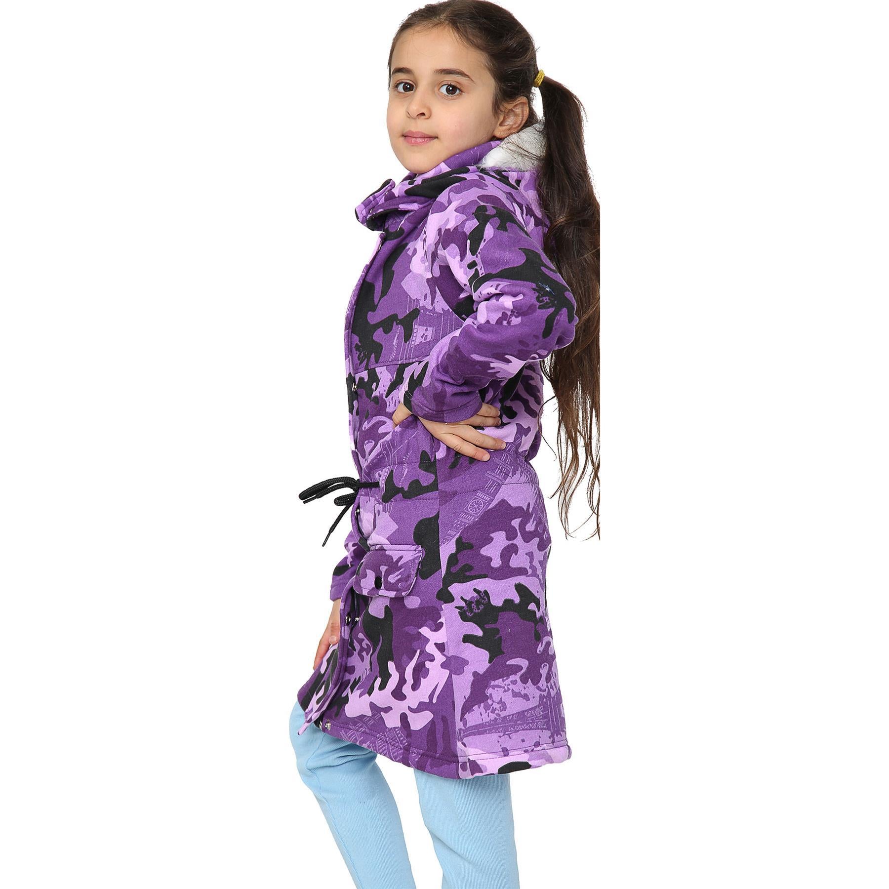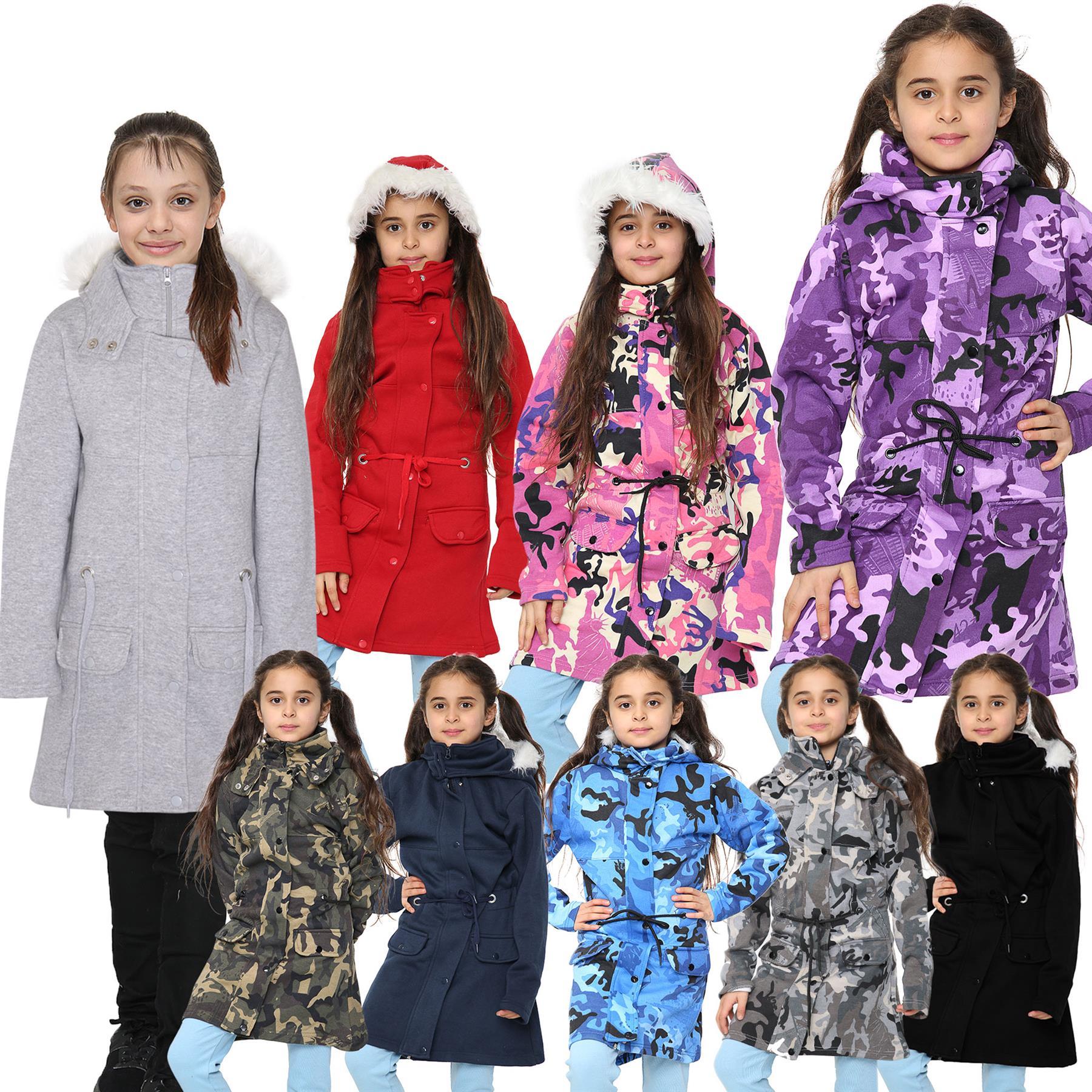 Kids Girls Hooded Camo Parka Jacket Faux Fur Coat New Fashion Age 5-13 Years