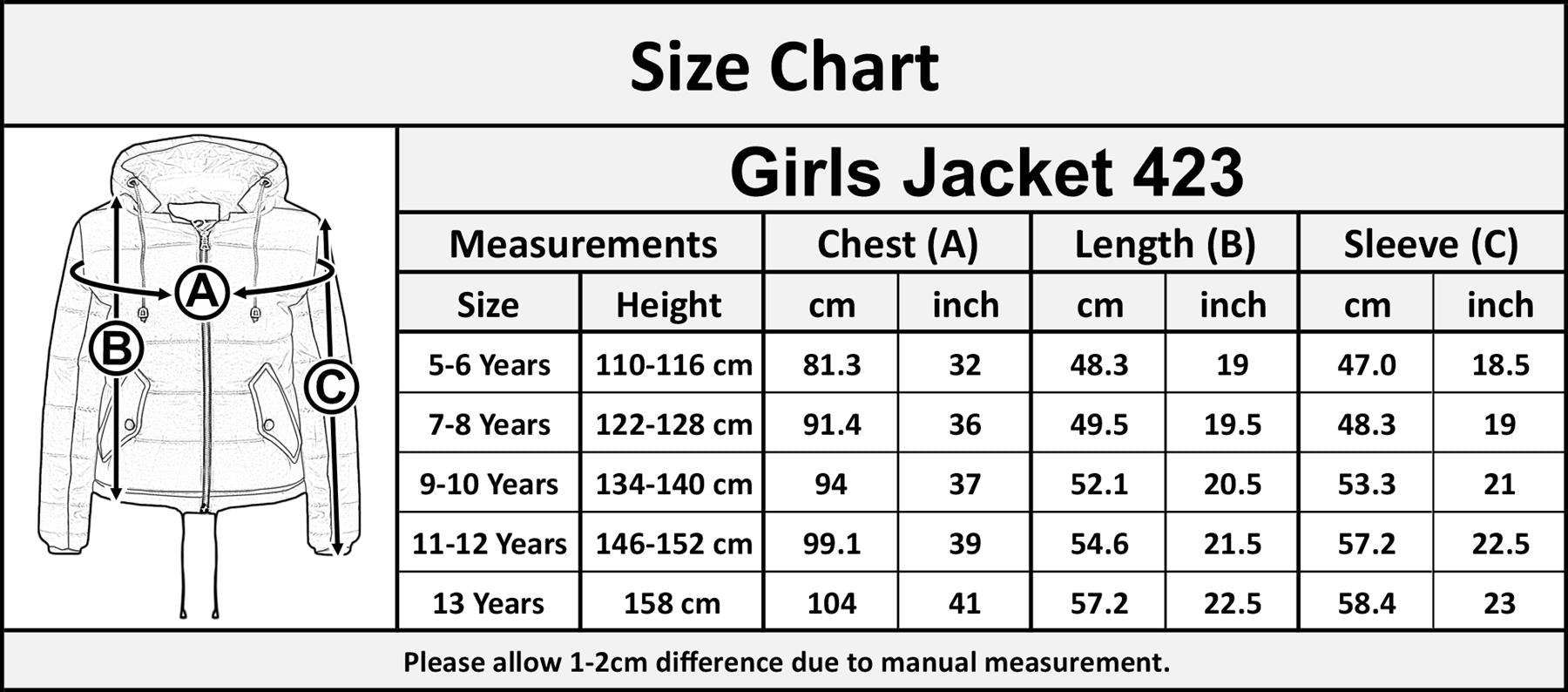 Kids Girls Jacket Stylish Cropped Padded Puffer Thick Coat Age 5-13 Years
