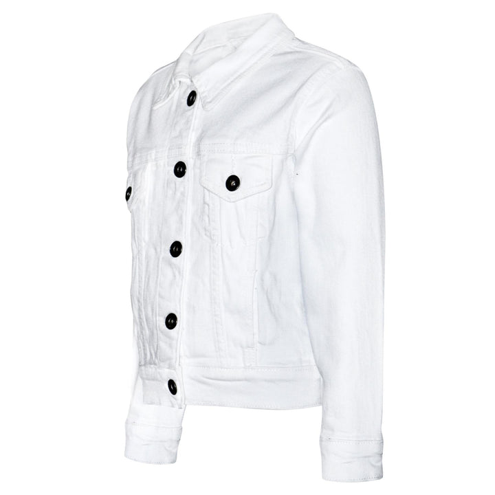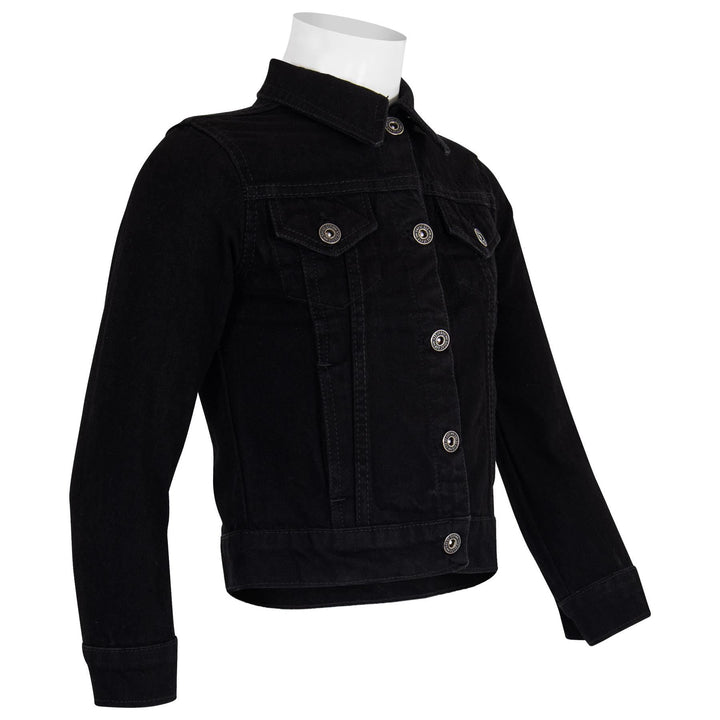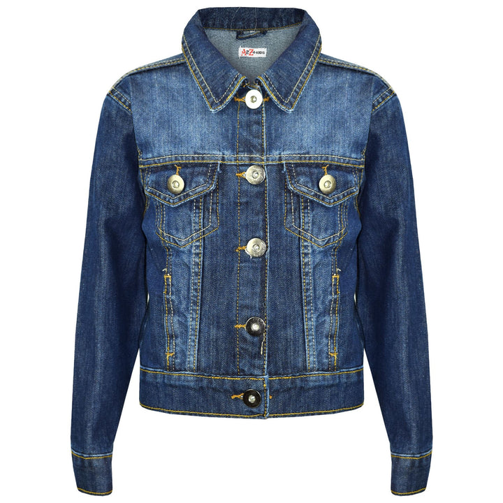 This stylish denim jacket is a must-have in every girl's wardrobe, perfect for pairing with jeans, skirts, leggings, or dresses. It easily complements a variety of outfits, making it ideal for any casual or stylish occasion.