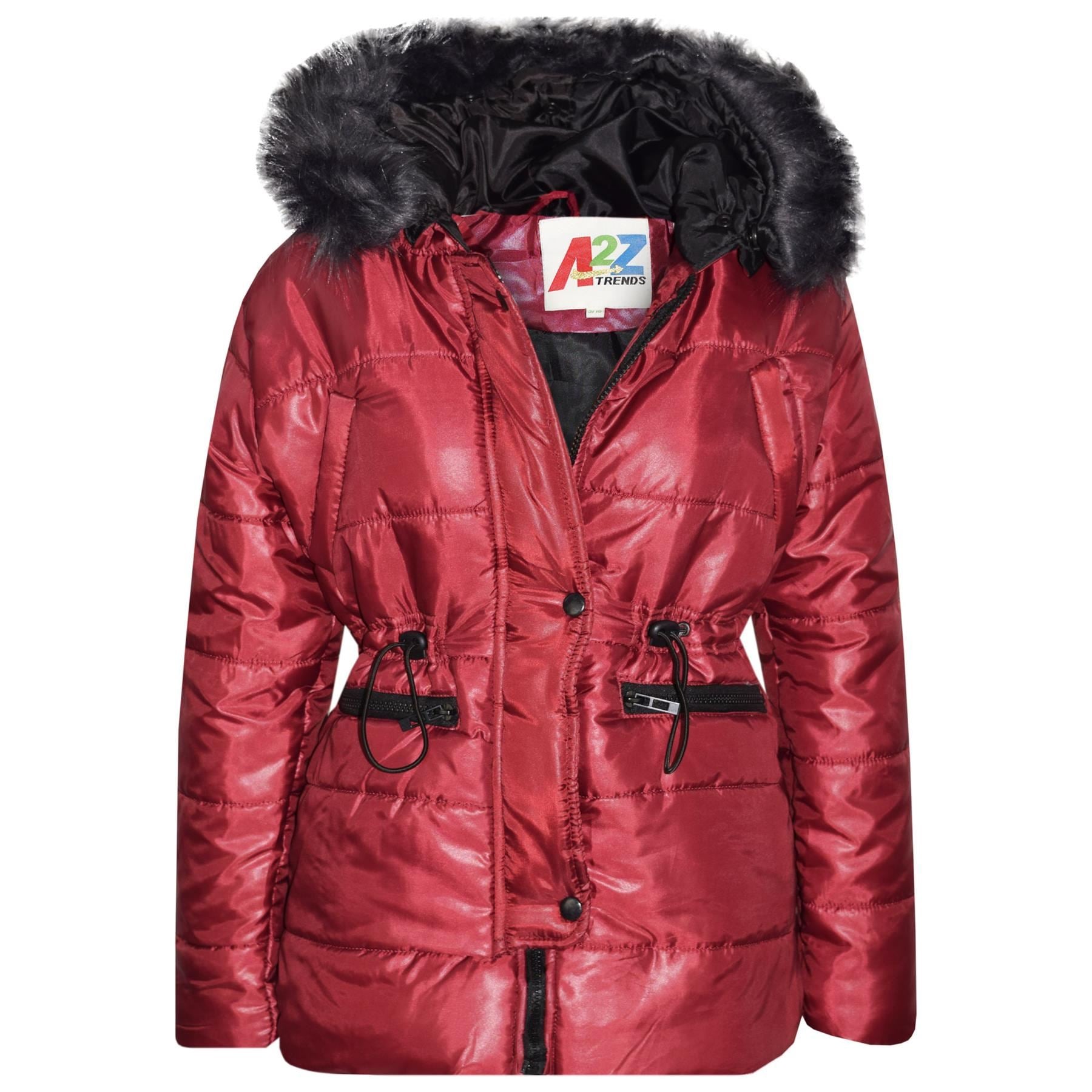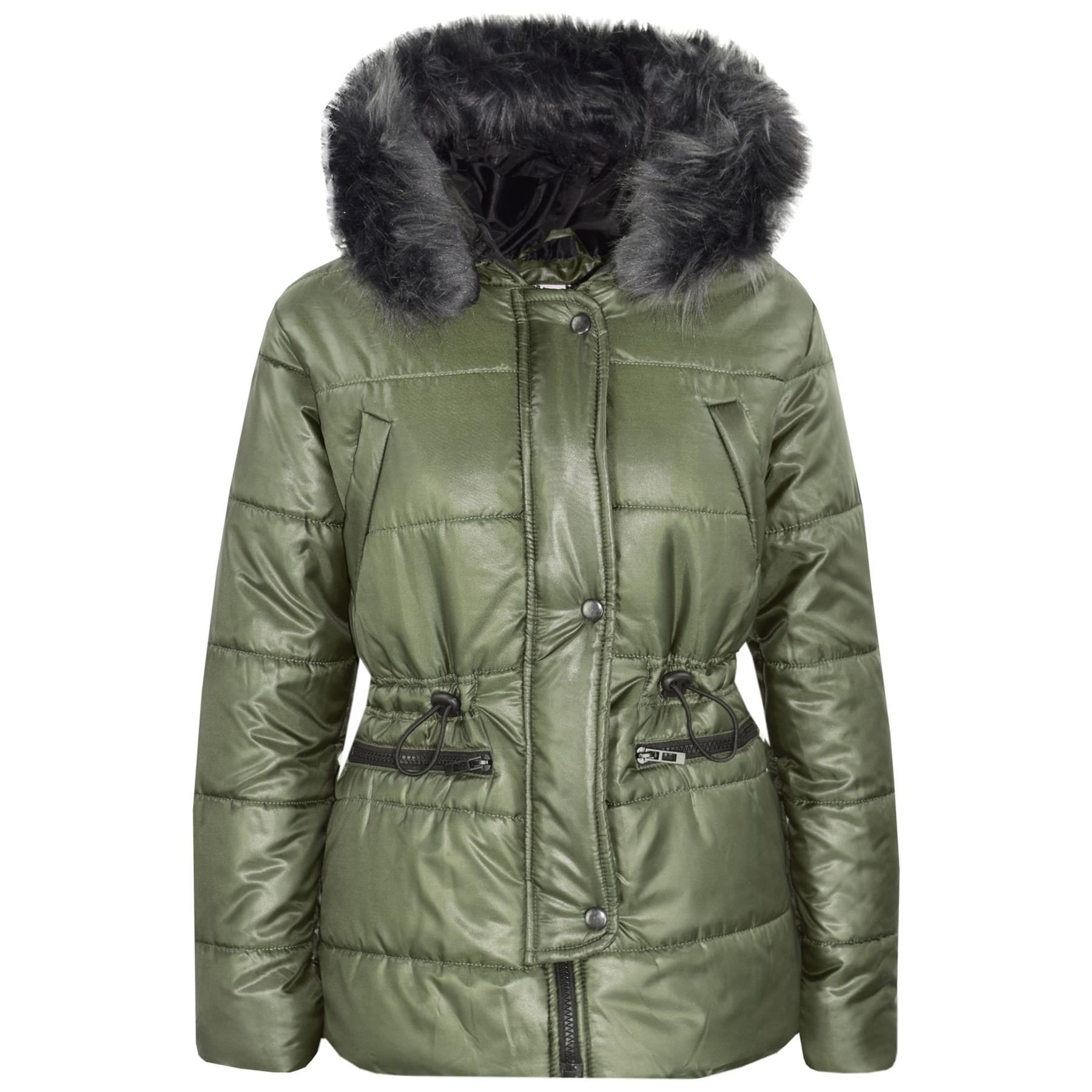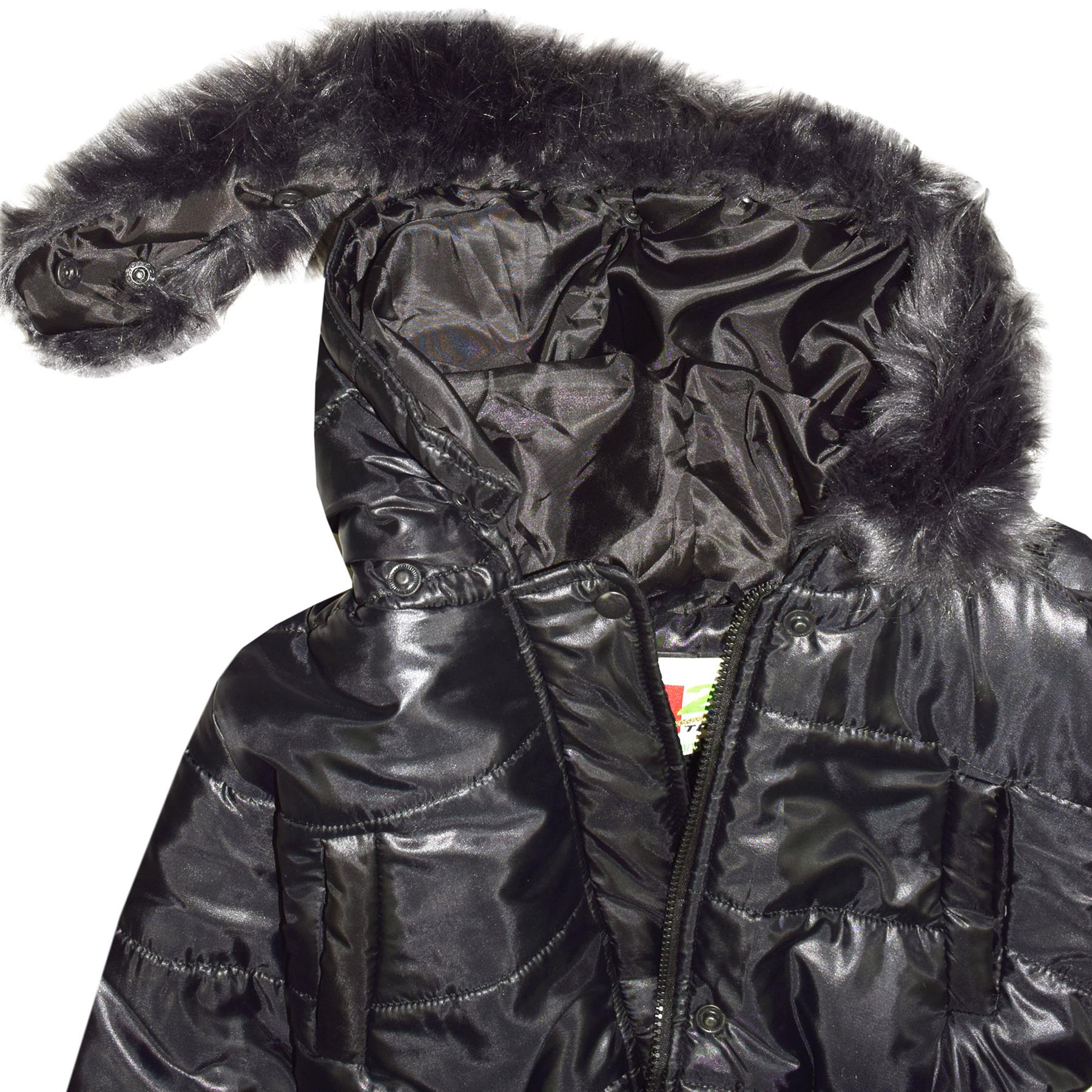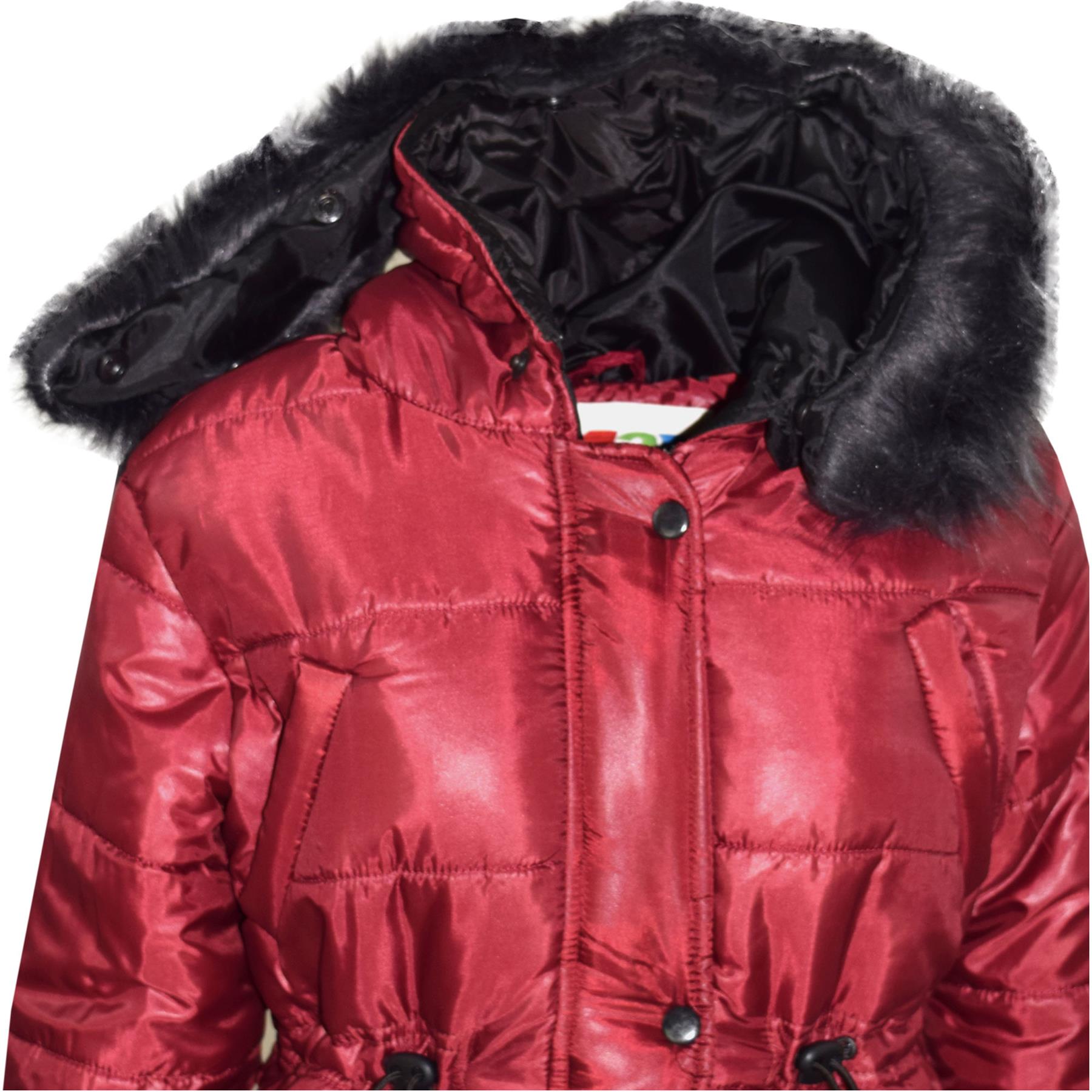 Kids Girls Jackets Puffer Hooded Detachable Faux Fur Wet Look Padded Long Coats