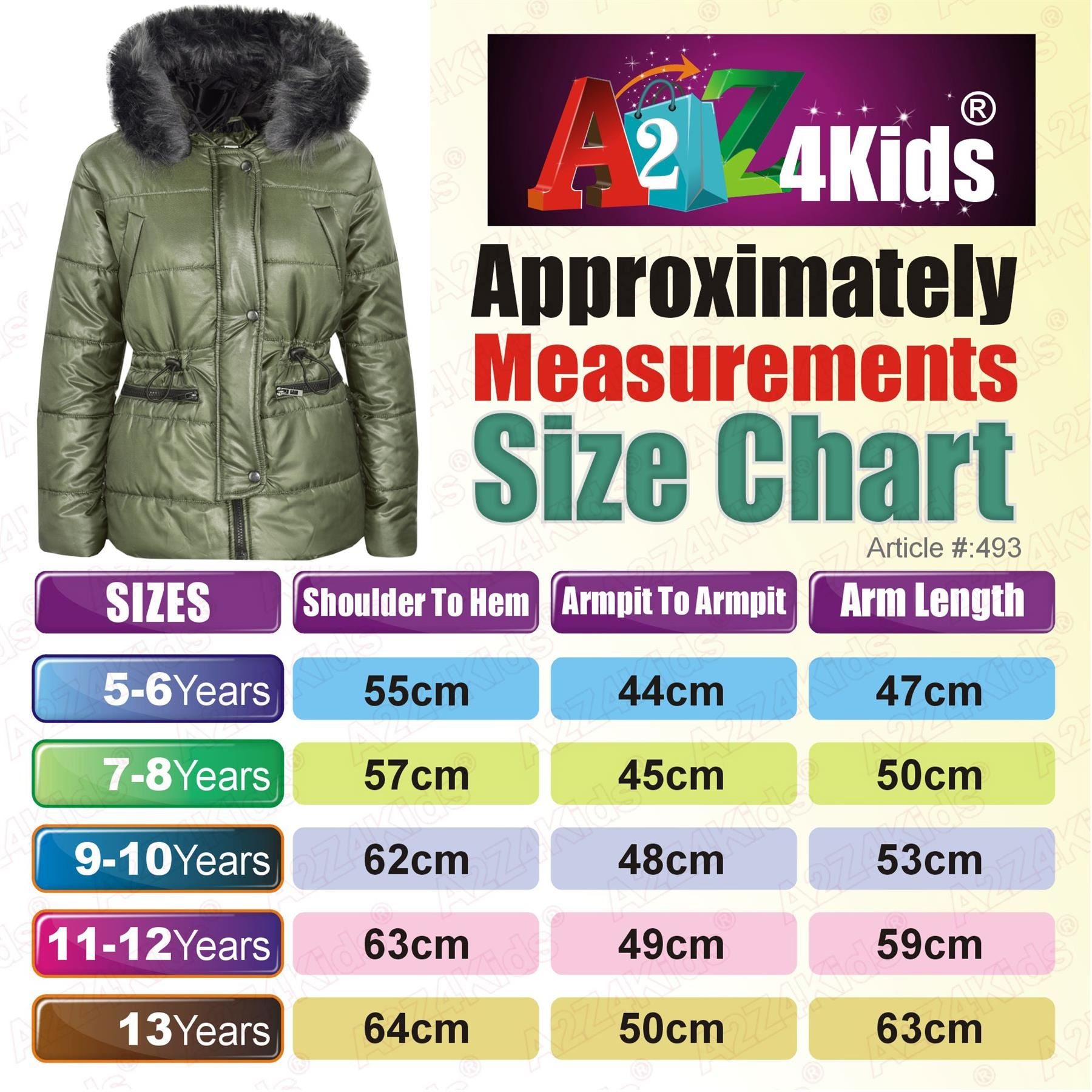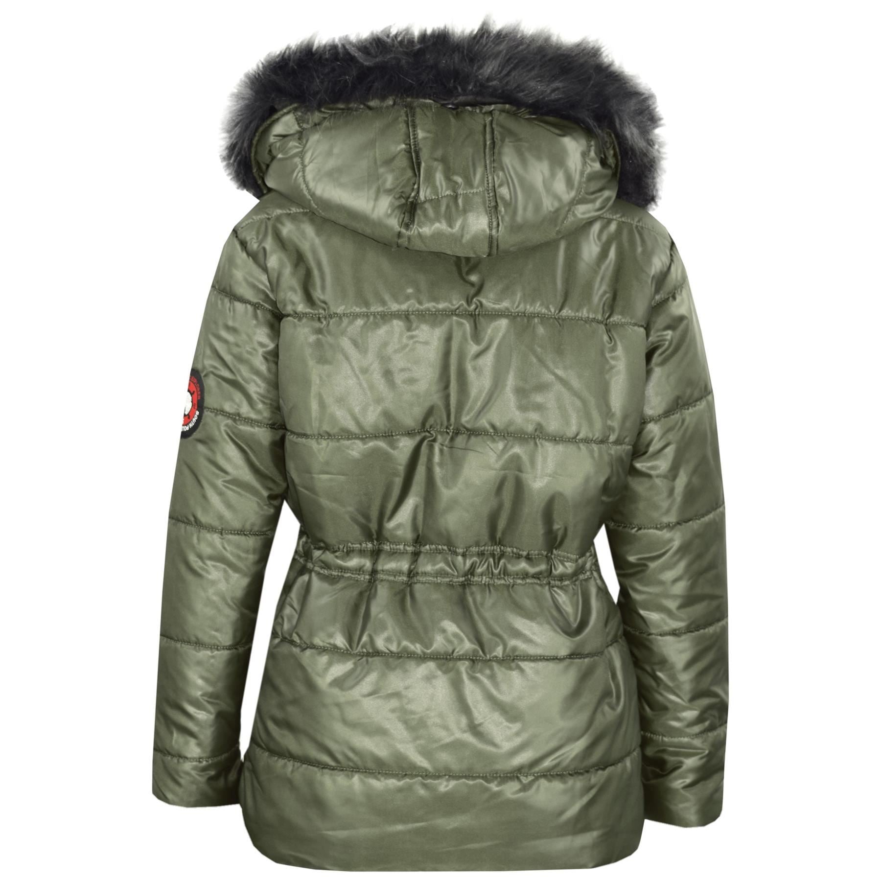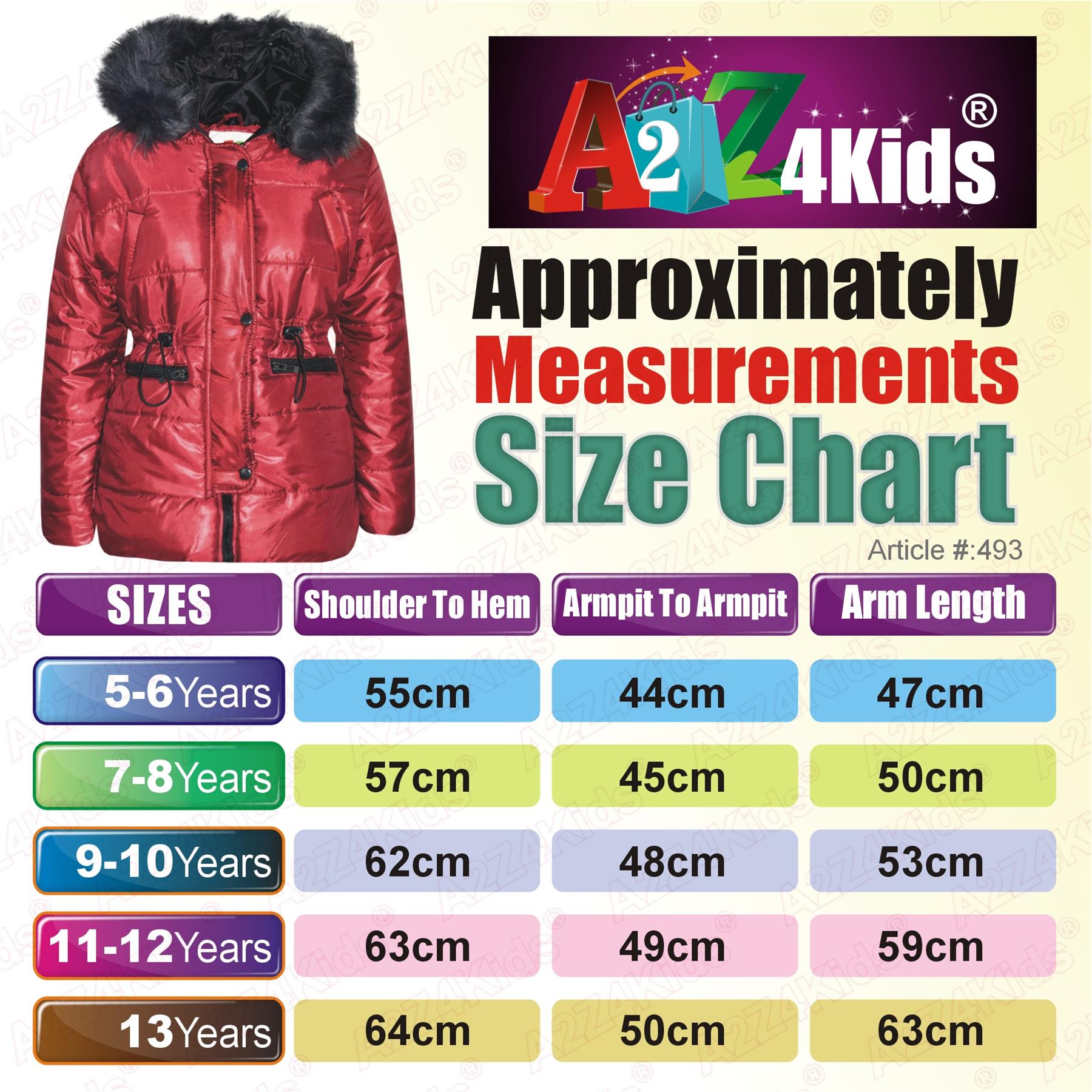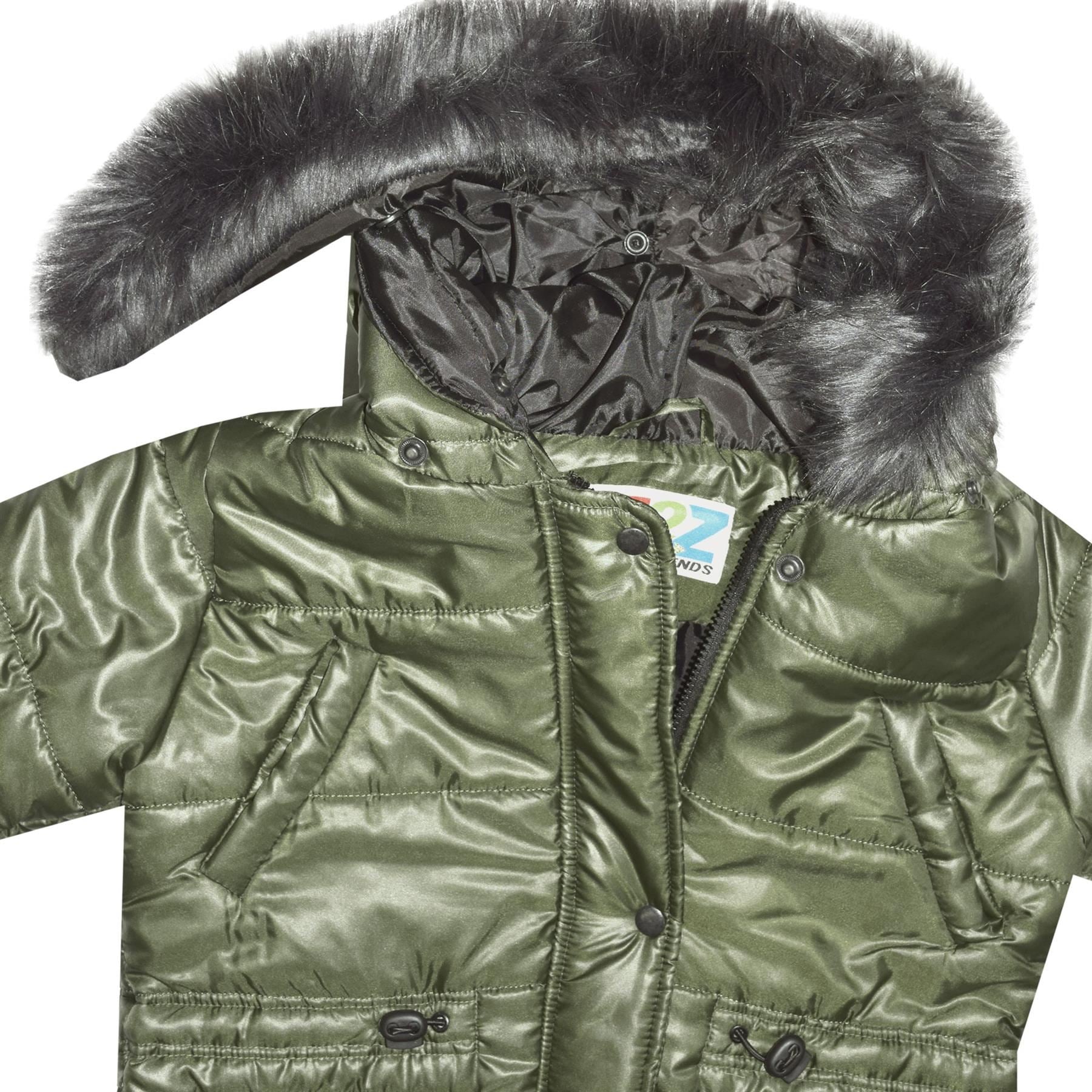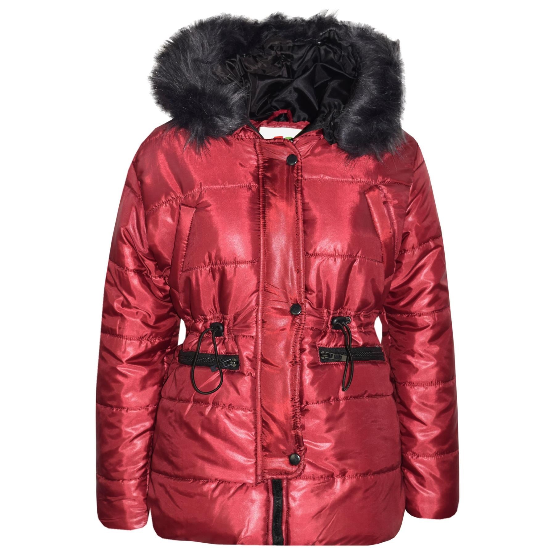 Kids Girls Jackets Puffer Hooded Detachable Faux Fur Wet Look Padded Long Coats