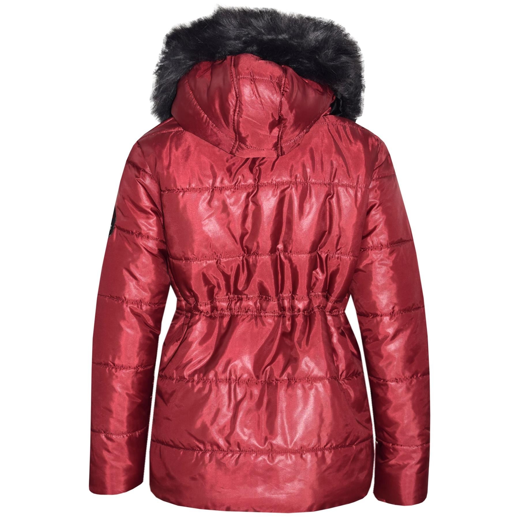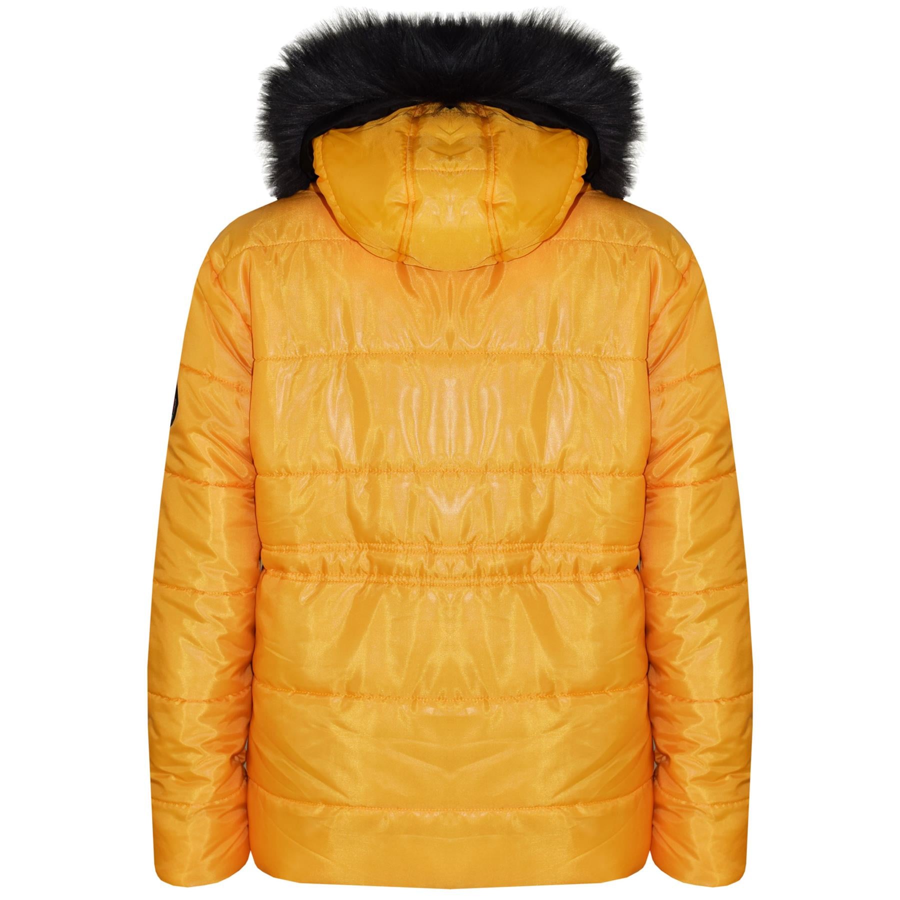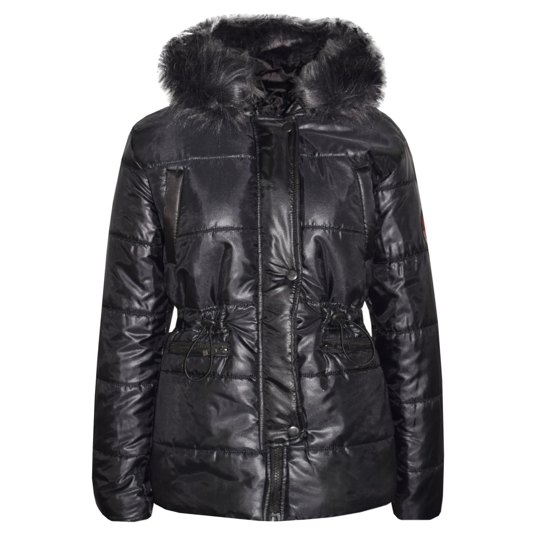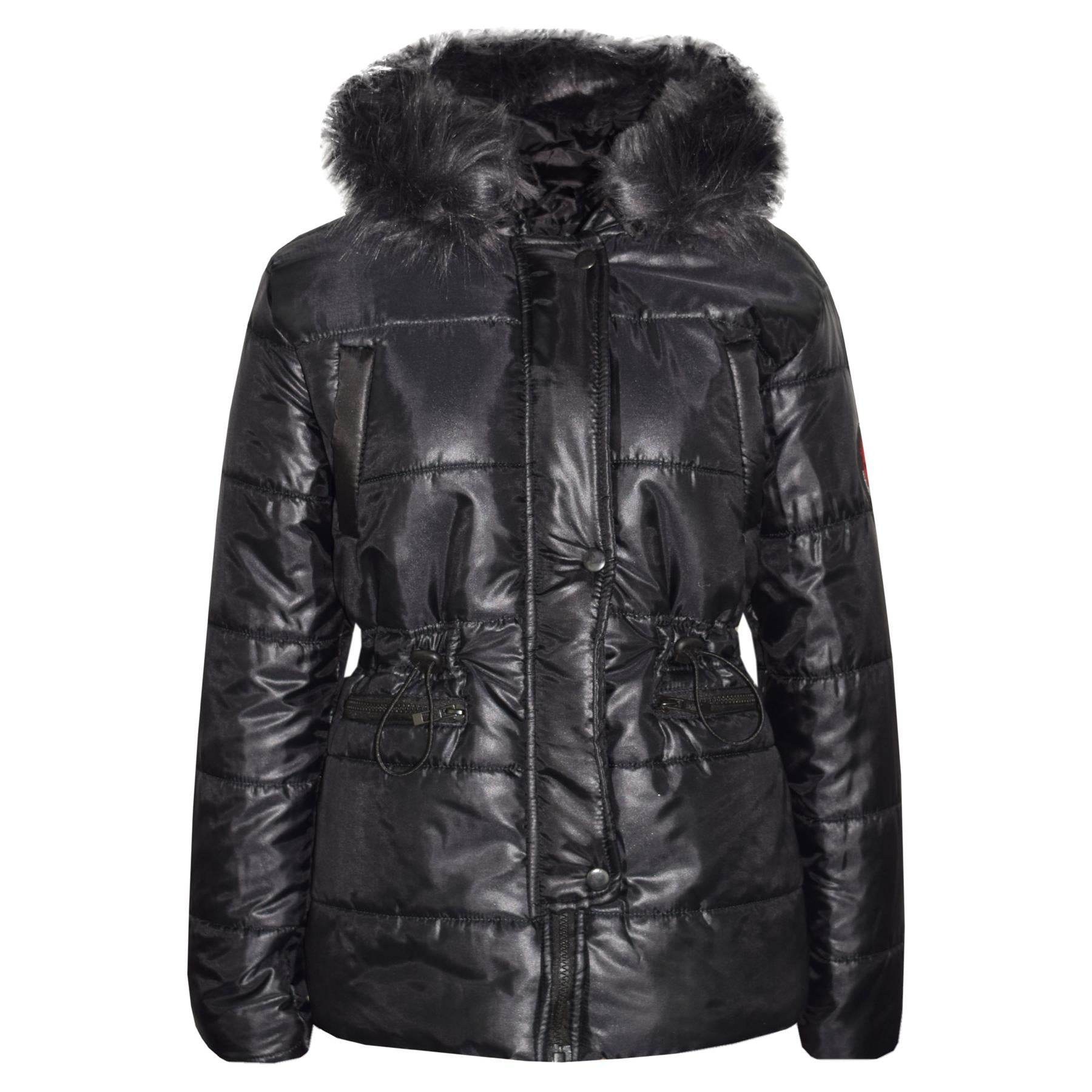 Kids Girls Jackets Puffer Hooded Detachable Faux Fur Wet Look Padded Long Coats