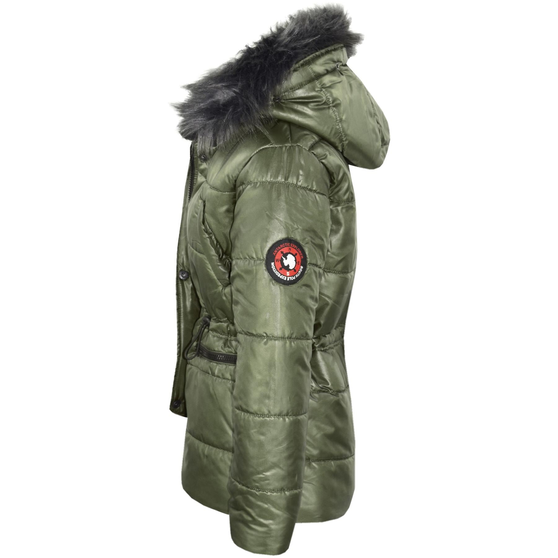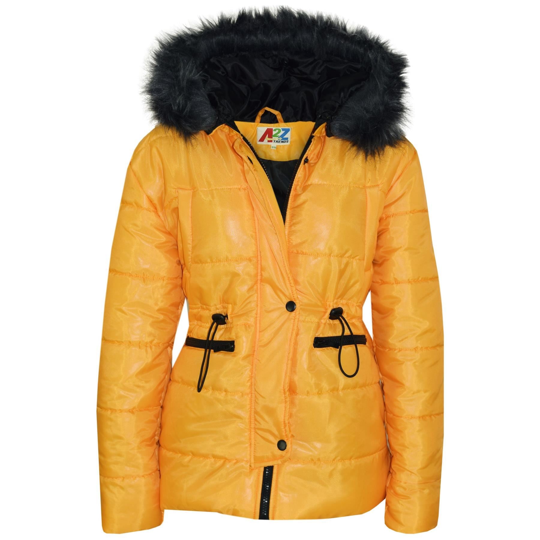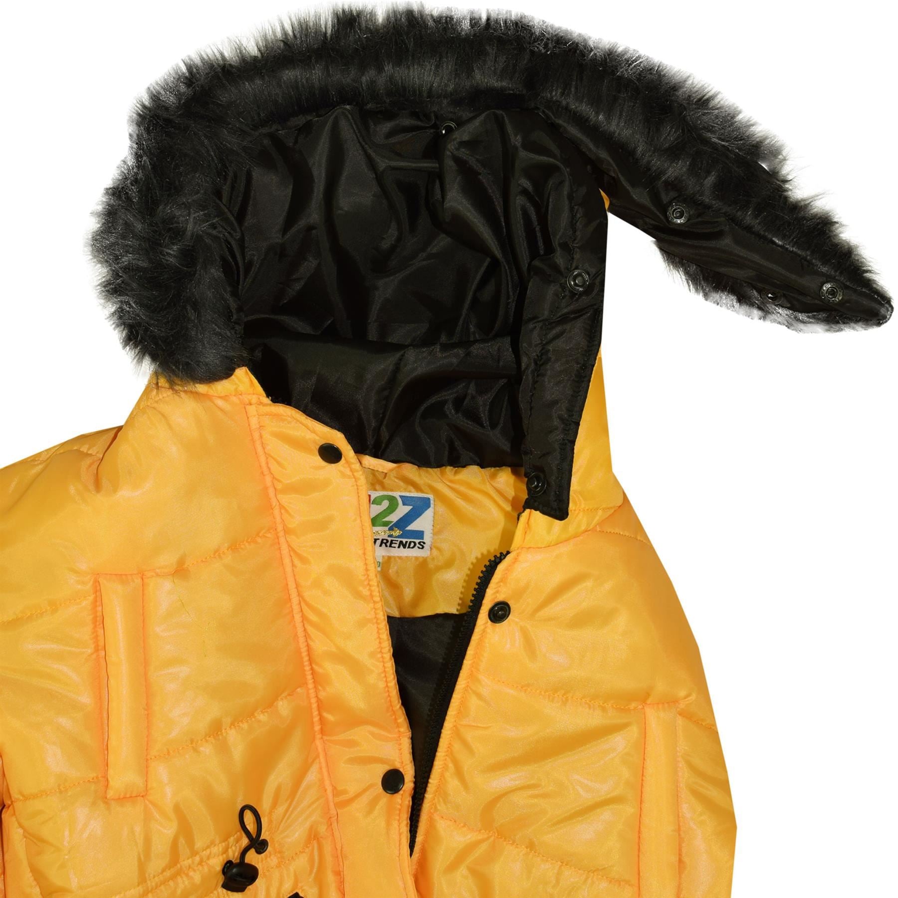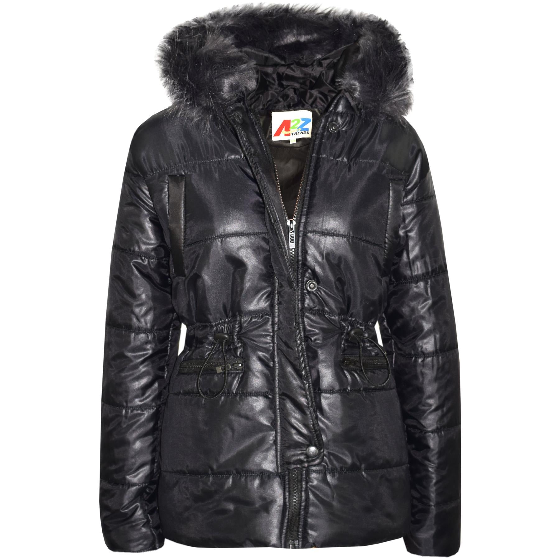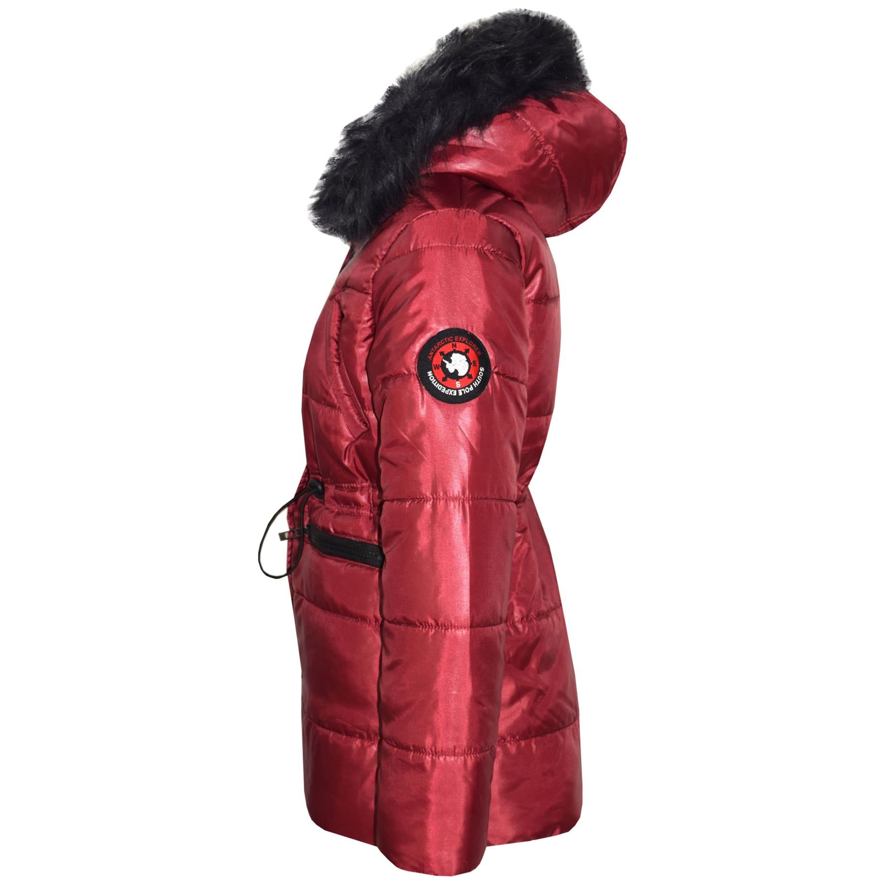 Kids Girls Jackets Puffer Hooded Detachable Faux Fur Wet Look Padded Long Coats