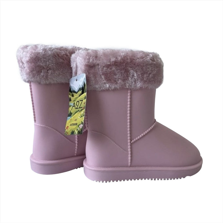 Kids Girls Ladies Warm Rain Boots with Faux Fur Lining Waterproof PVC Mummy Boot