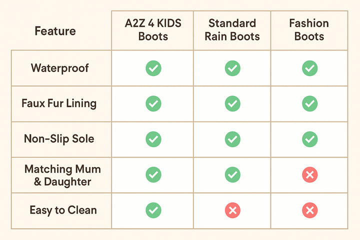 Made from durable waterproof PVC with an easy-clean surface, these boots are built to last through rain, puddles, and mud. The lightweight design ensures ease of wear without compromising durability, making them ideal for school runs, weekend trips, outdoor play, and winter walks while keeping feet dry and warm.