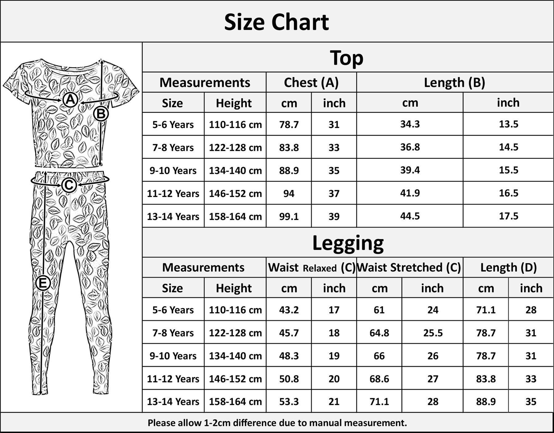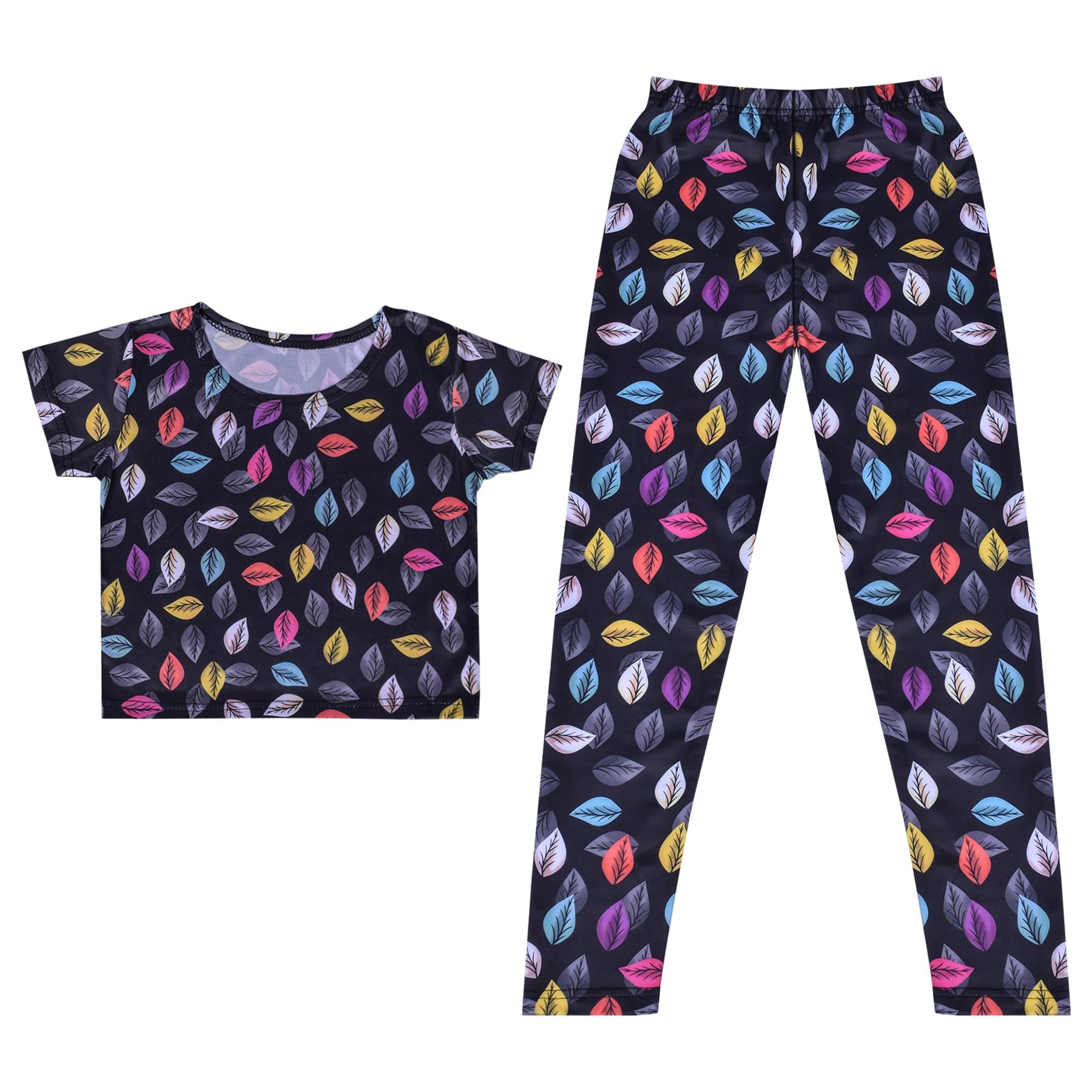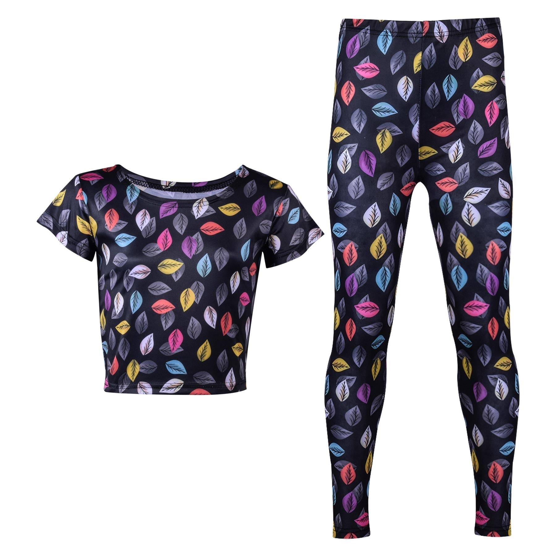 Kids Girls Leaves Crop Top Legging Set Comfortable Casual Wear Outfit Sets
