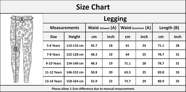 Our Girls Leggings are offered in various sizes to accommodate girls aged 5 to 13. Whether she is commencing her schooling or transitioning into her adolescent years, we provide the ideal fit to guarantee her both an aesthetically pleasing look and a comfortable feel. -