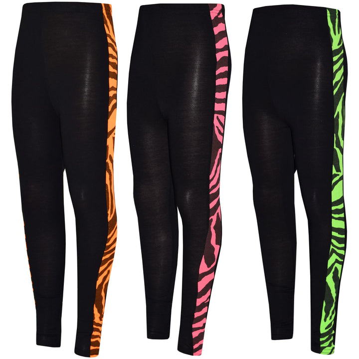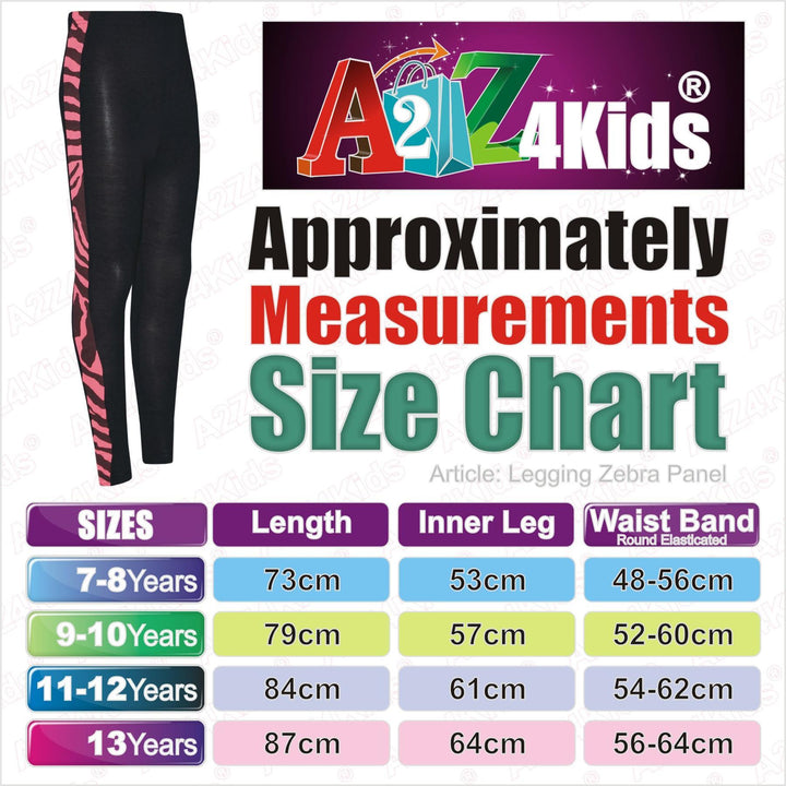 Kids Girls Legging Zebra Panelled Legging Trendy Party Fashion Dance Pants 7-13Y
